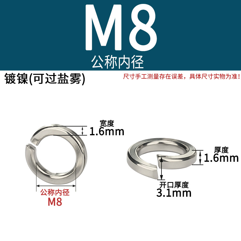 • 탄성 패드 M8 니켈 도금 (48 시간 소금 스프레이)