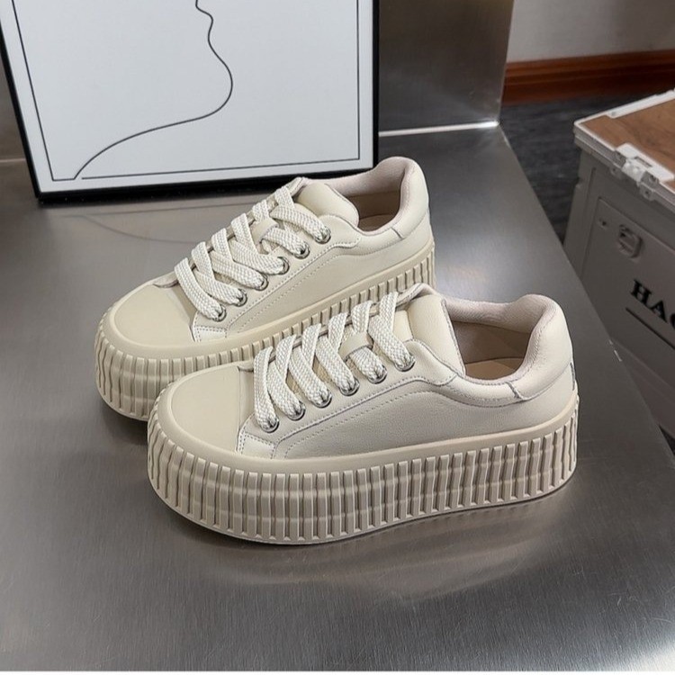 트렌디한 브랜드 정품 가죽 스포츠 화이트 슈즈 여성용 2023 가을 겨울 새로운 로우탑 슈즈 한국식 올매치 라이트 럭셔리 비스킷 슈즈스토어 가기