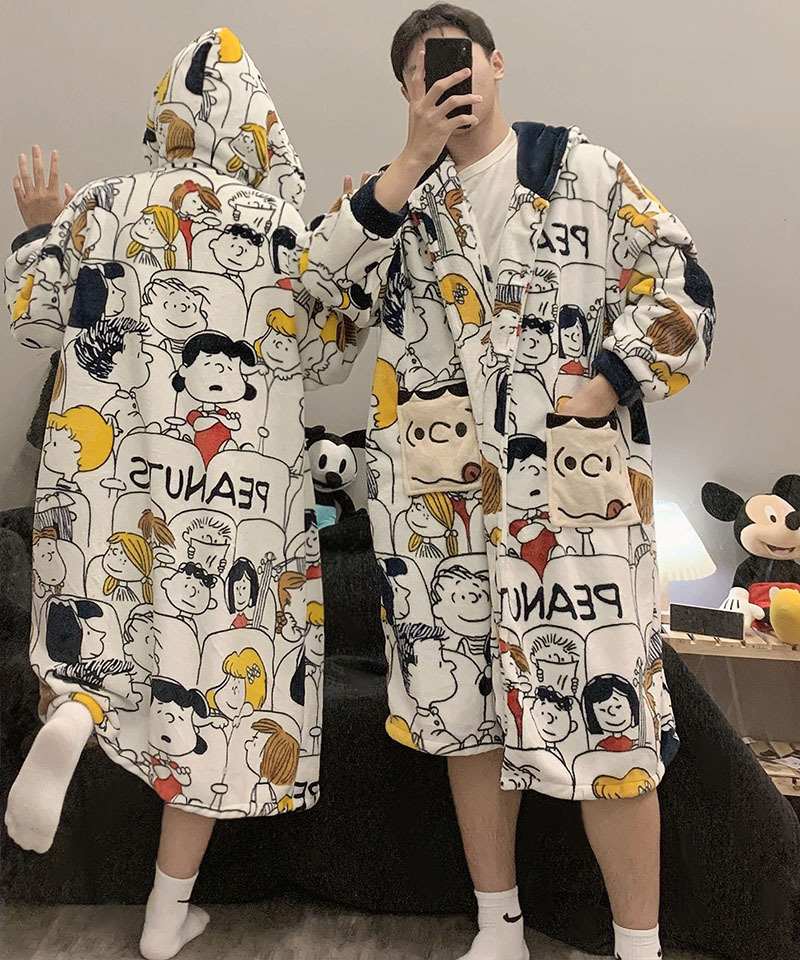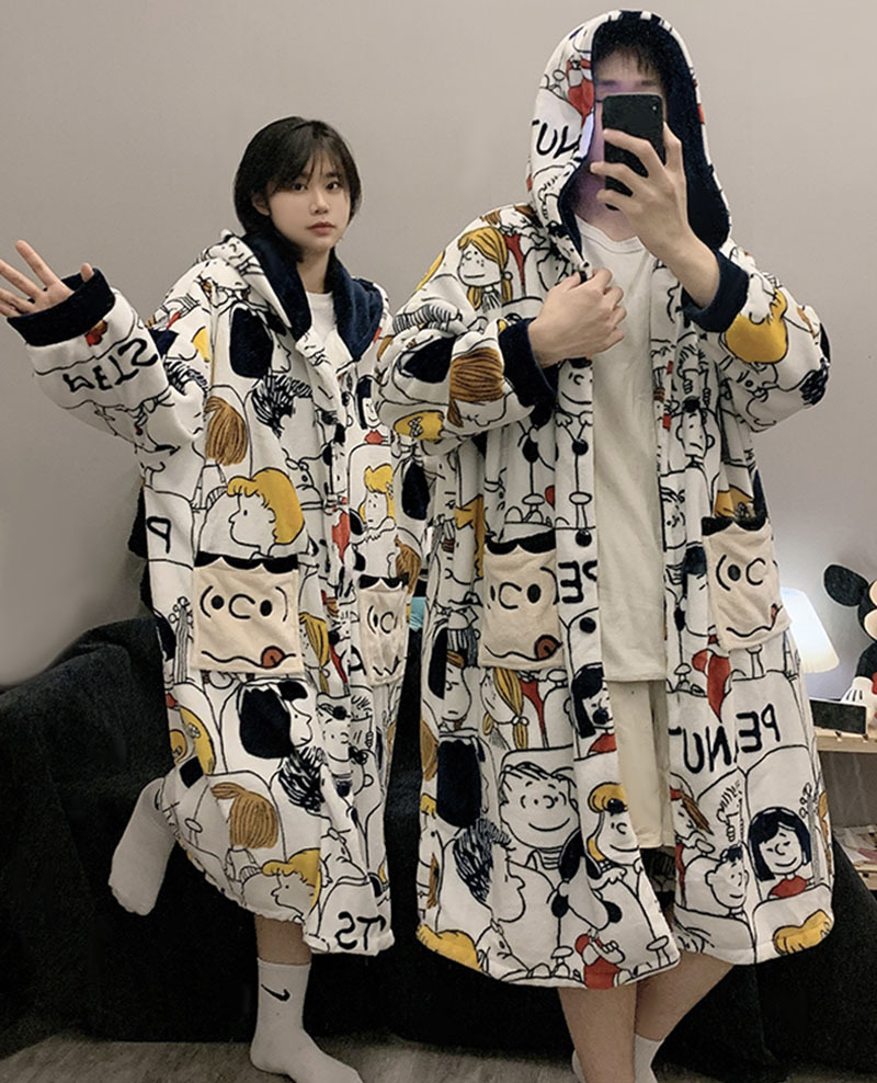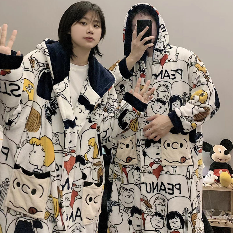 스누피 코랄 벨벳 커플 잠옷 가을 겨울 남성용 목욕 가운 여성용 목욕 가운 잠옷 홈웨어 두꺼운 보온스토어 가기