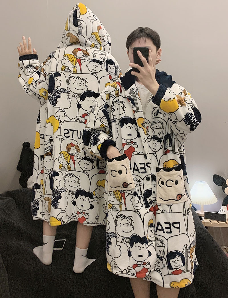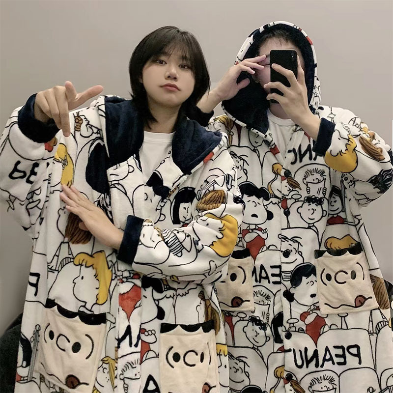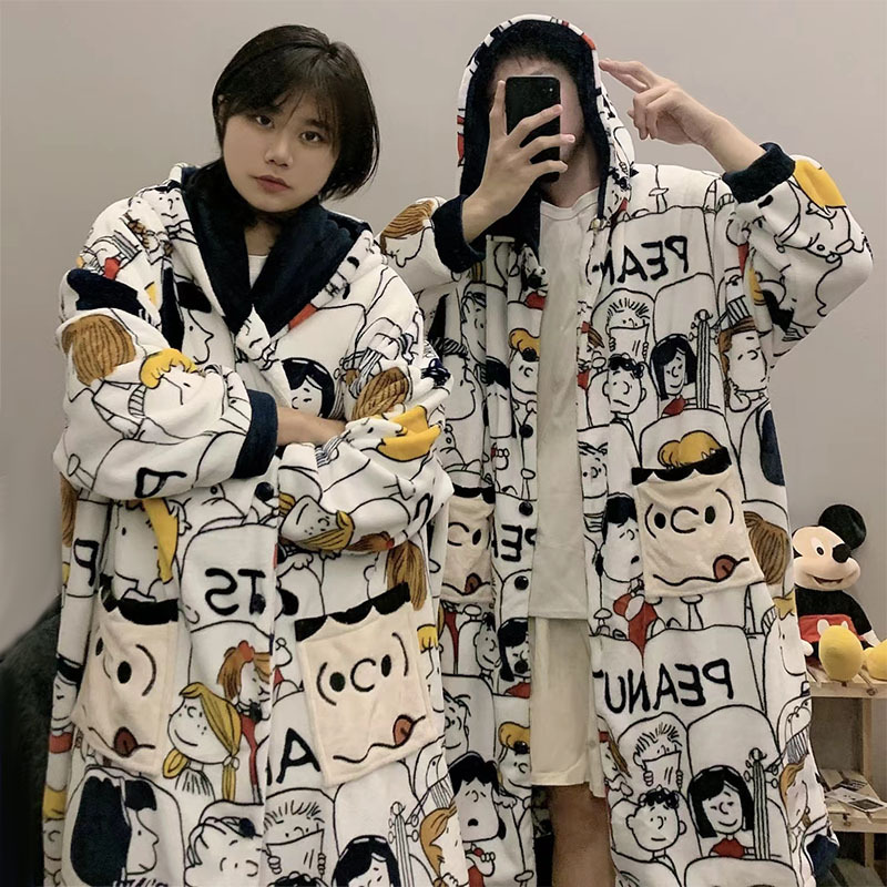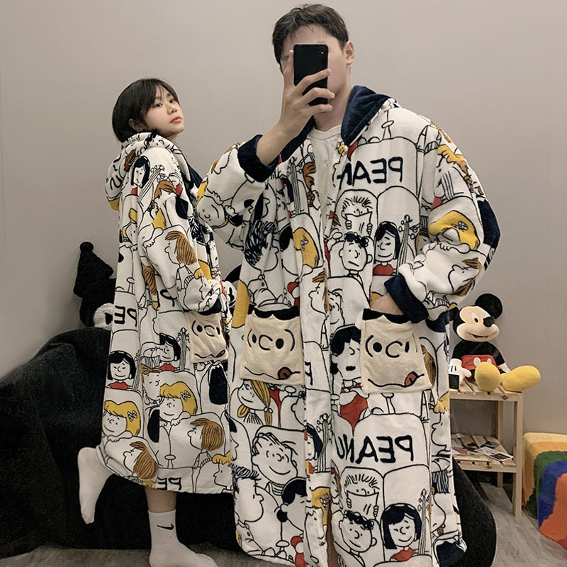 스누피 코랄 벨벳 커플 잠옷 가을 겨울 남성용 목욕 가운 여성용 목욕 가운 잠옷 홈웨어 두꺼운 보온