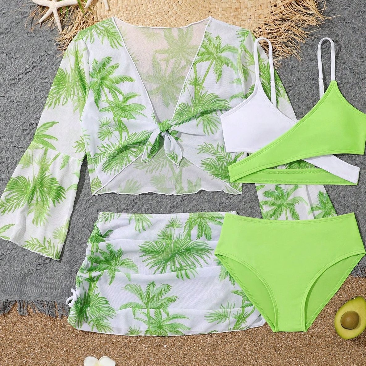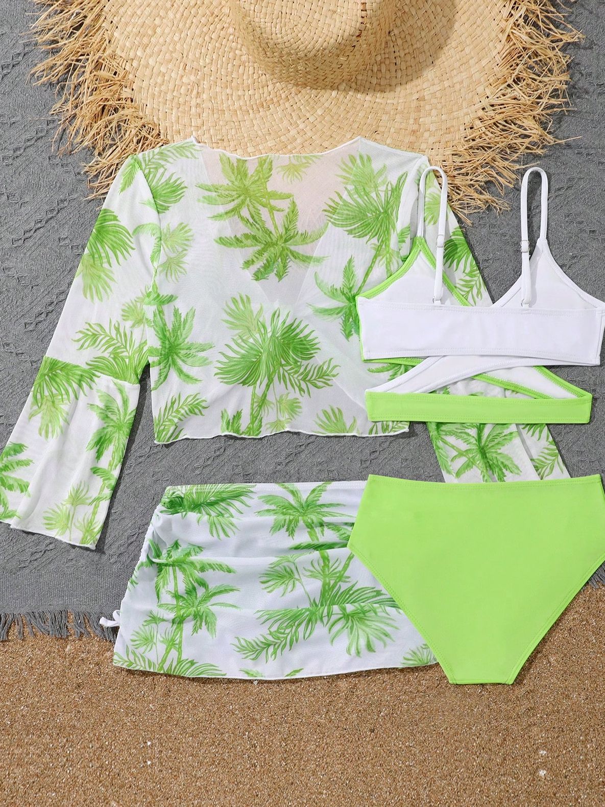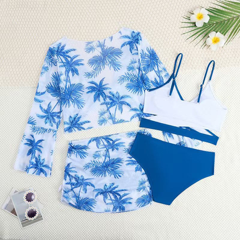 2025 새로운 Amazon 유럽과 미국의 섹시한 중대형 어린이 4피스 하이 웨이스트 스플릿 비키니 수영복 제조 업체 도매스토어 가기