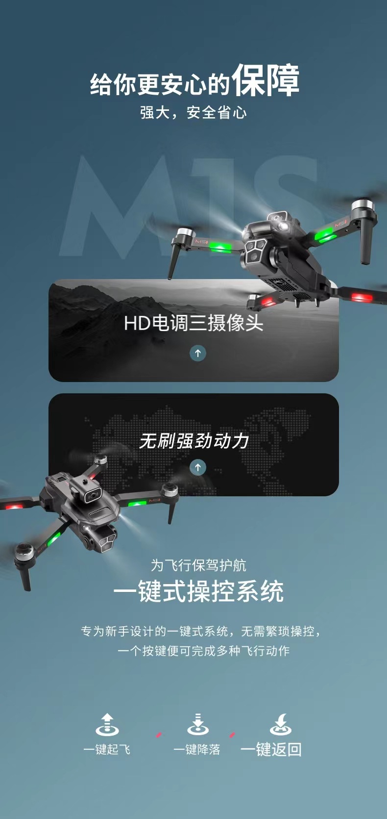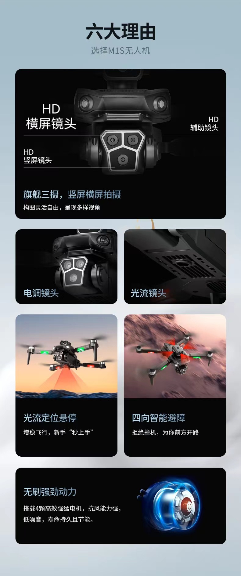 M1s 브러시리스 드론 미니 광학 흐름 전기 튜닝 항공 사진 항공기 장애물 회피 원격 제어 항공기 Chenghai 장난감스토어 가기