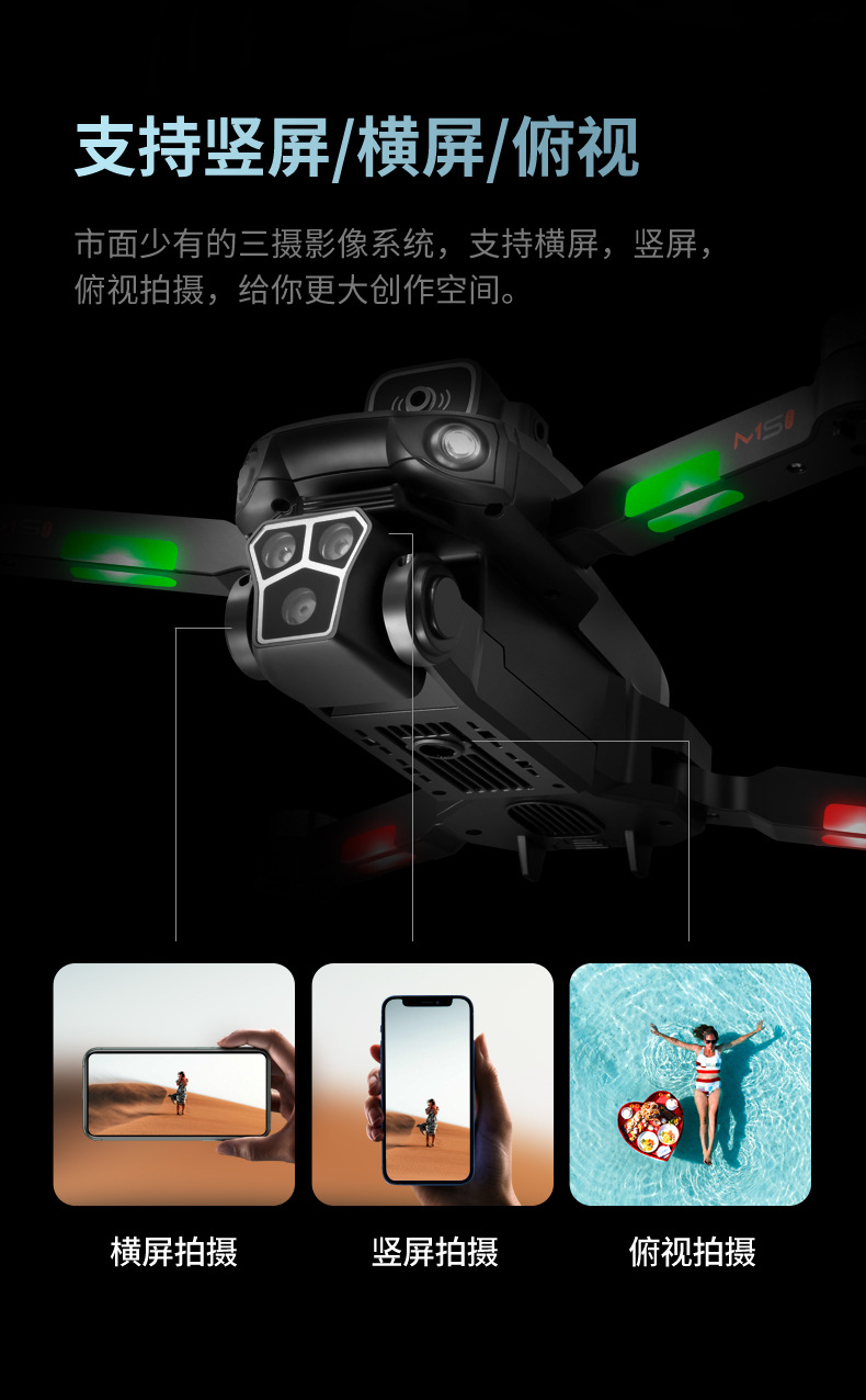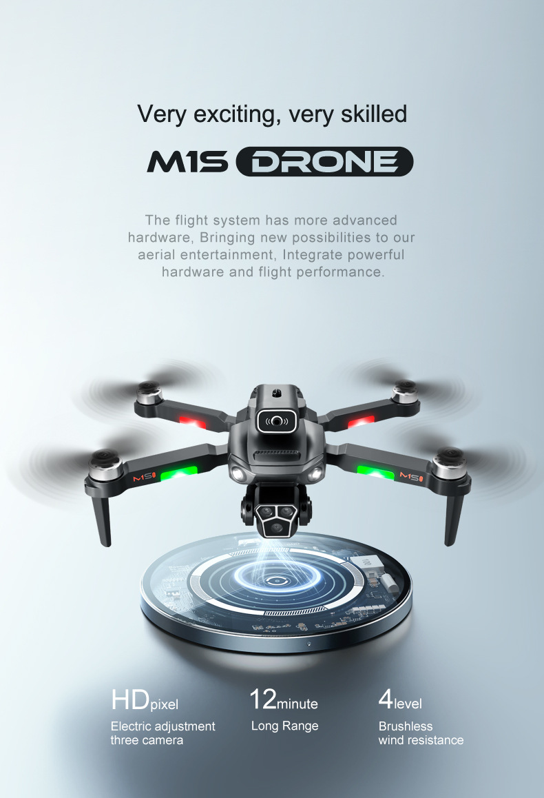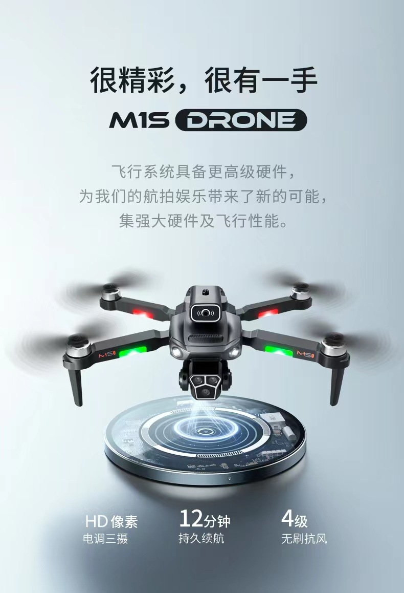 M1s 브러시리스 드론 미니 광학 흐름 전기 튜닝 항공 사진 항공기 장애물 회피 원격 제어 항공기 Chenghai 장난감