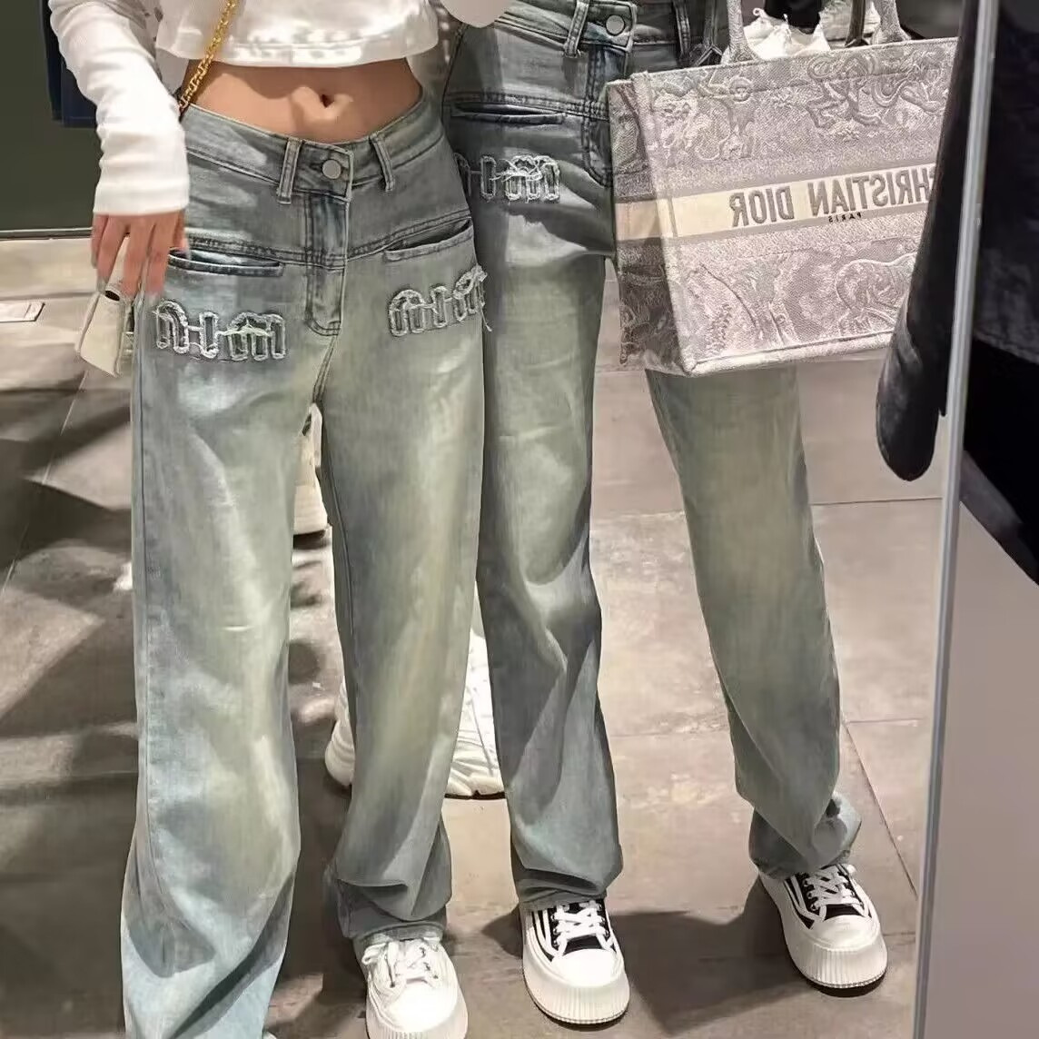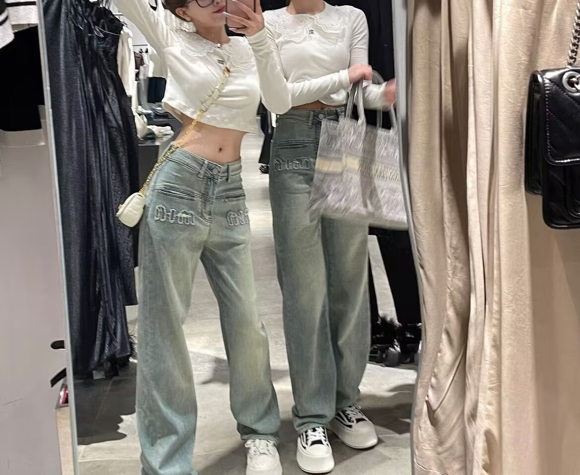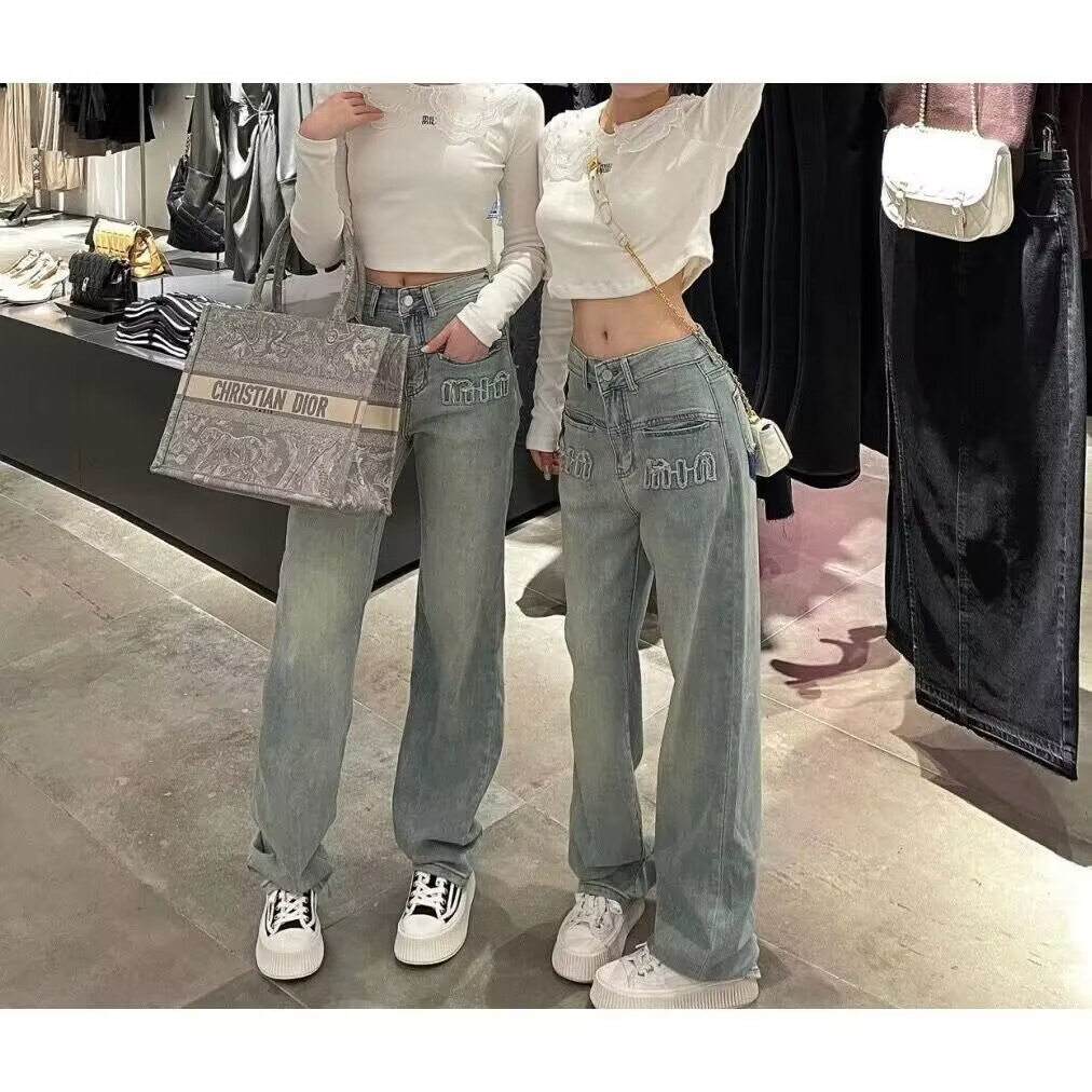 [크로스 보더 도매] 미국 복고풍 청바지 여성의 봄과 여름 올드 워싱 하이 웨이스트 스트레이트 슬림 와이드 레그 팬츠스토어 가기