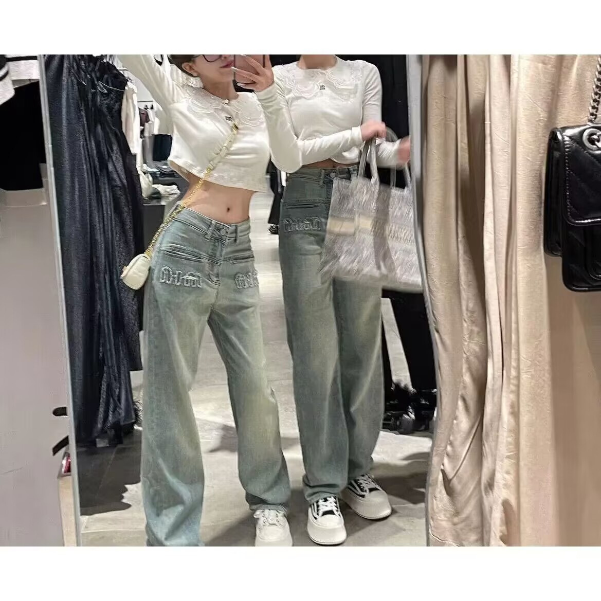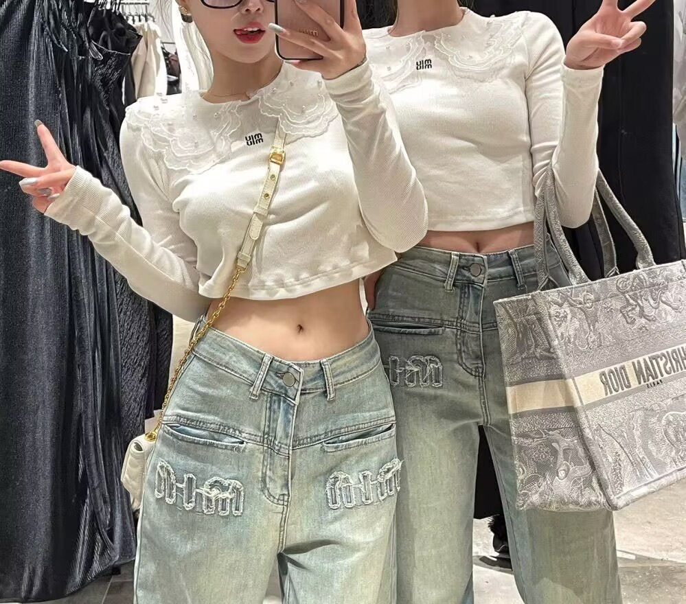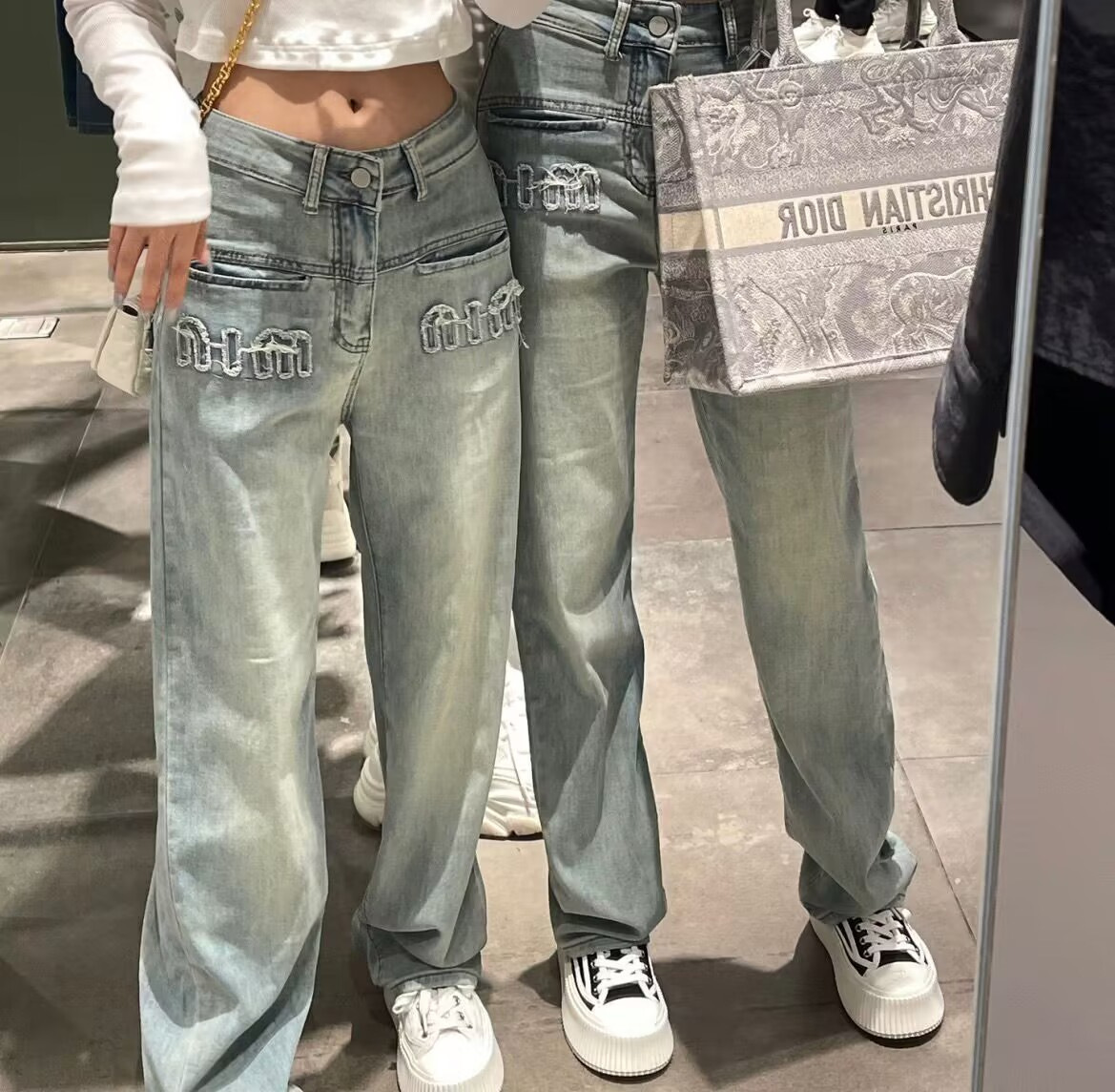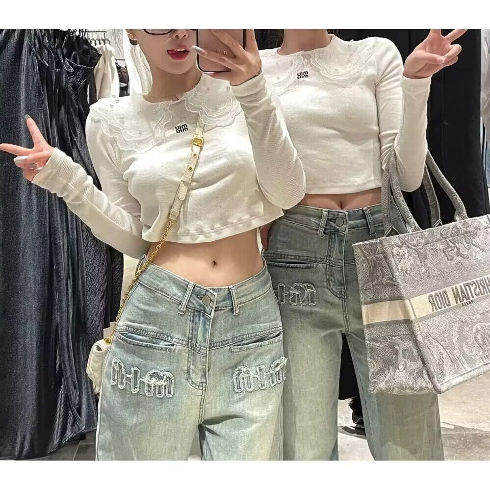 [크로스 보더 도매] 미국 복고풍 청바지 여성의 봄과 여름 올드 워싱 하이 웨이스트 스트레이트 슬림 와이드 레그 팬츠스토어 가기