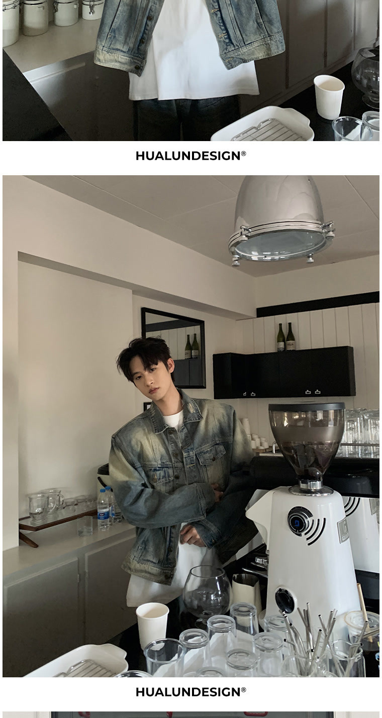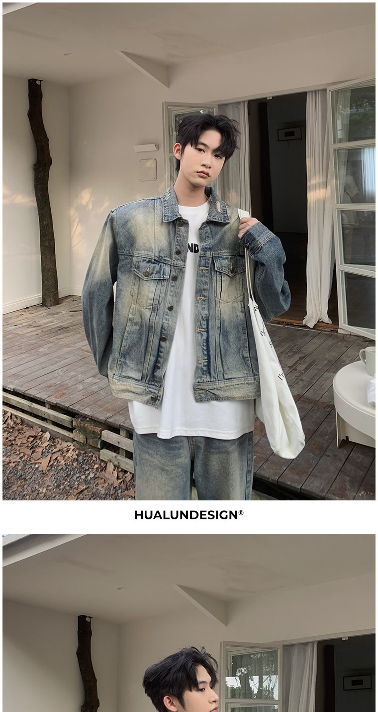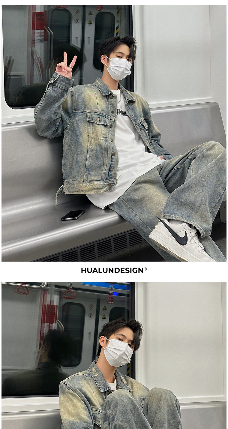 가을 패션 브랜드 빈티지 워싱 데님 세트 남자의 세트 잘 생긴 빈티지 홍콩 스타일 남성 자켓 코트 패션스토어 가기