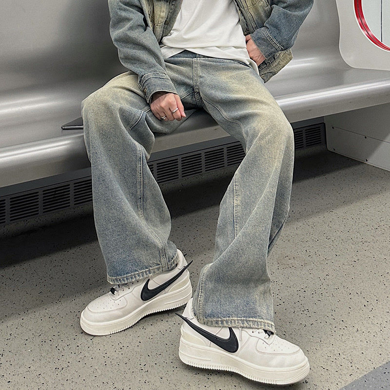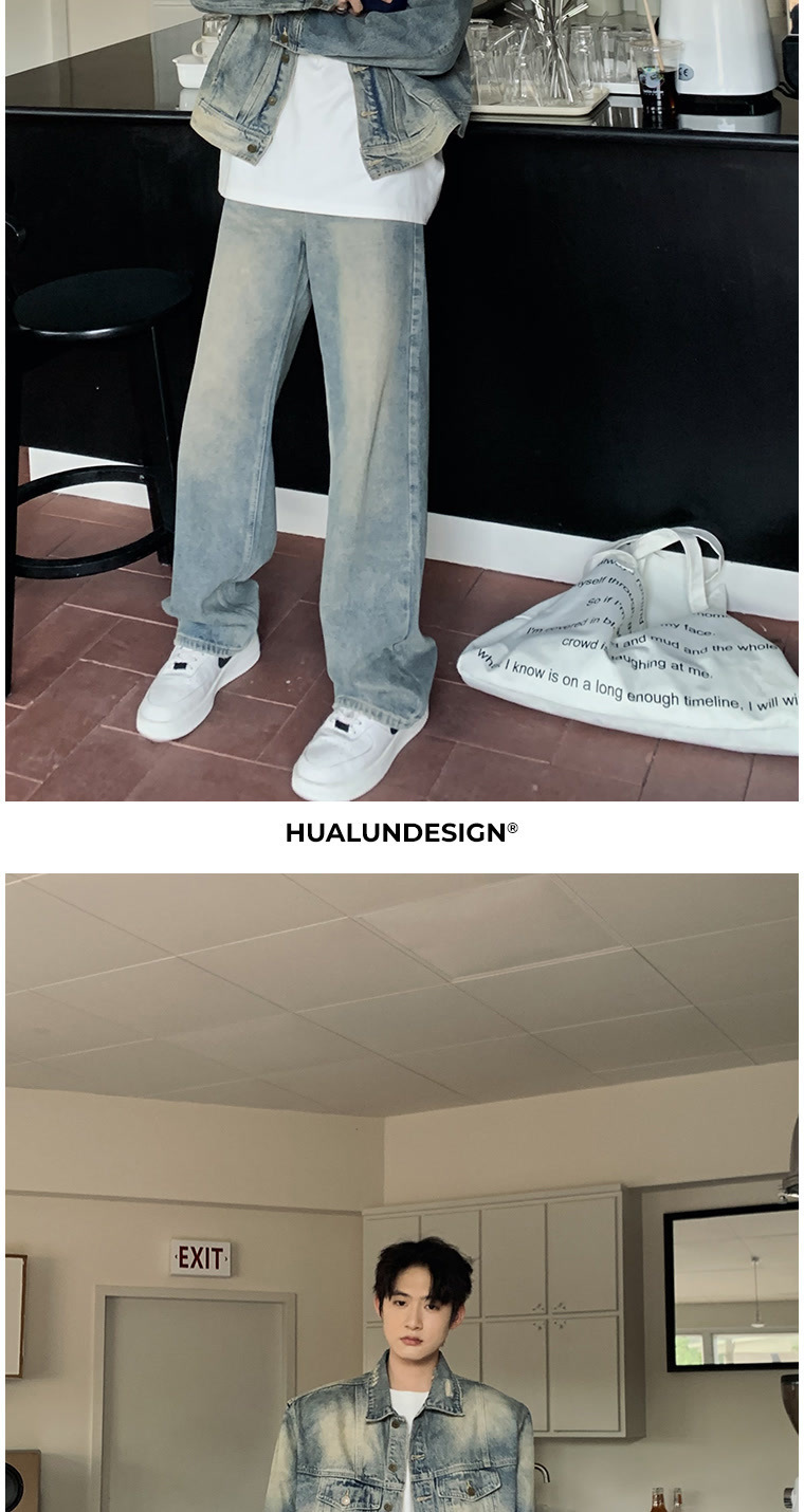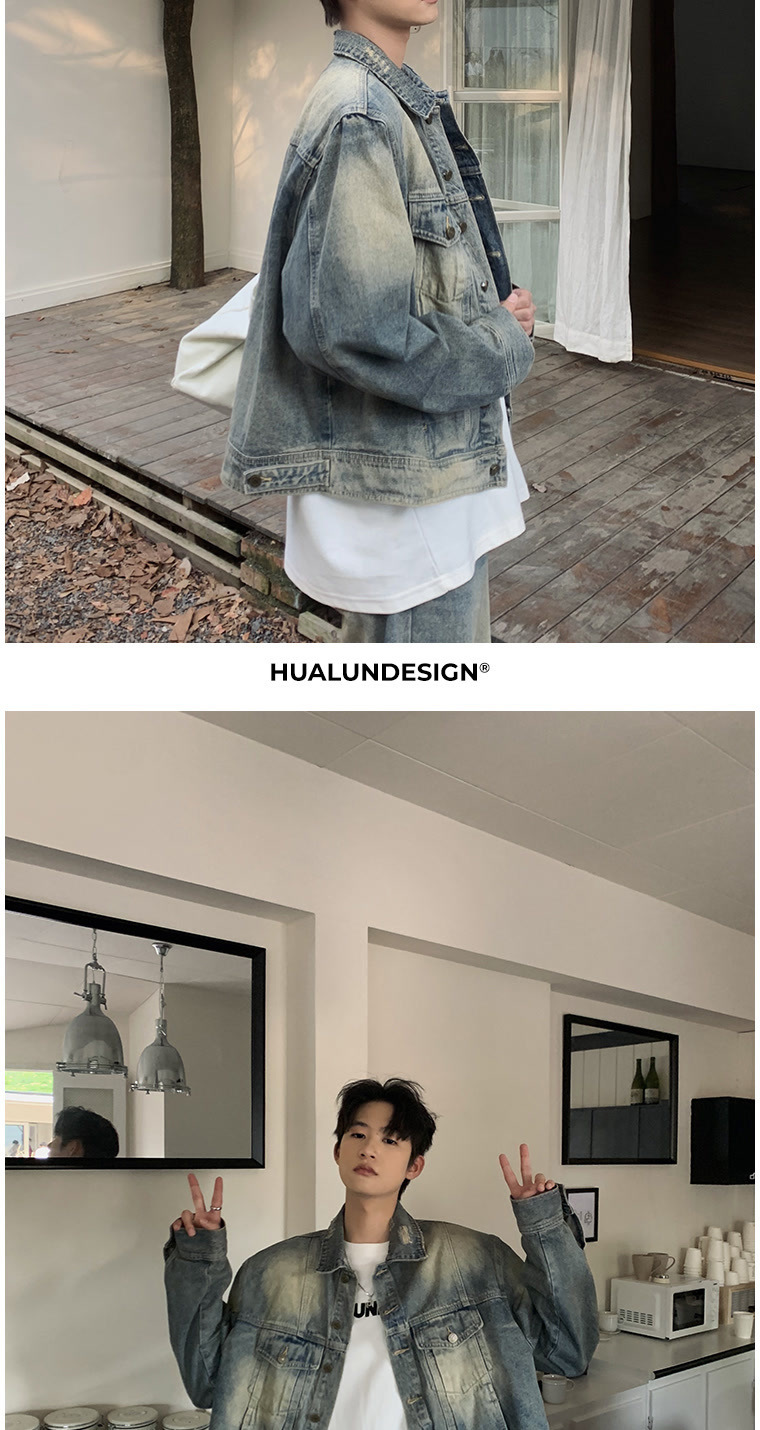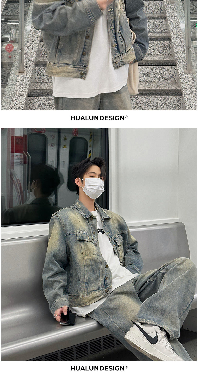 가을 패션 브랜드 빈티지 워싱 데님 세트 남자의 세트 잘 생긴 빈티지 홍콩 스타일 남성 자켓 코트 패션스토어 가기