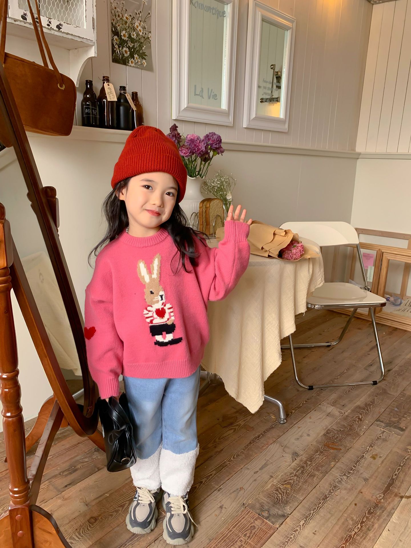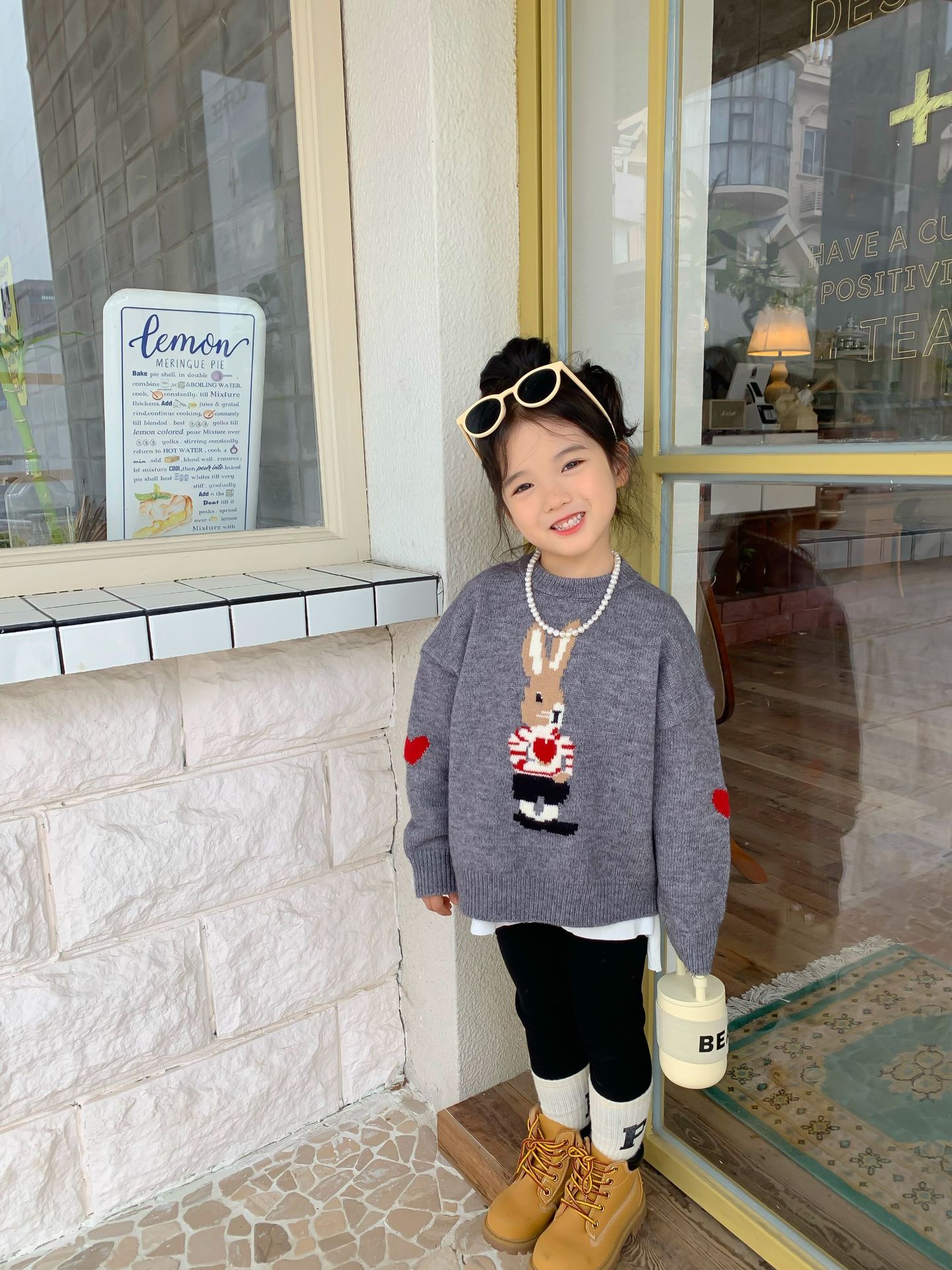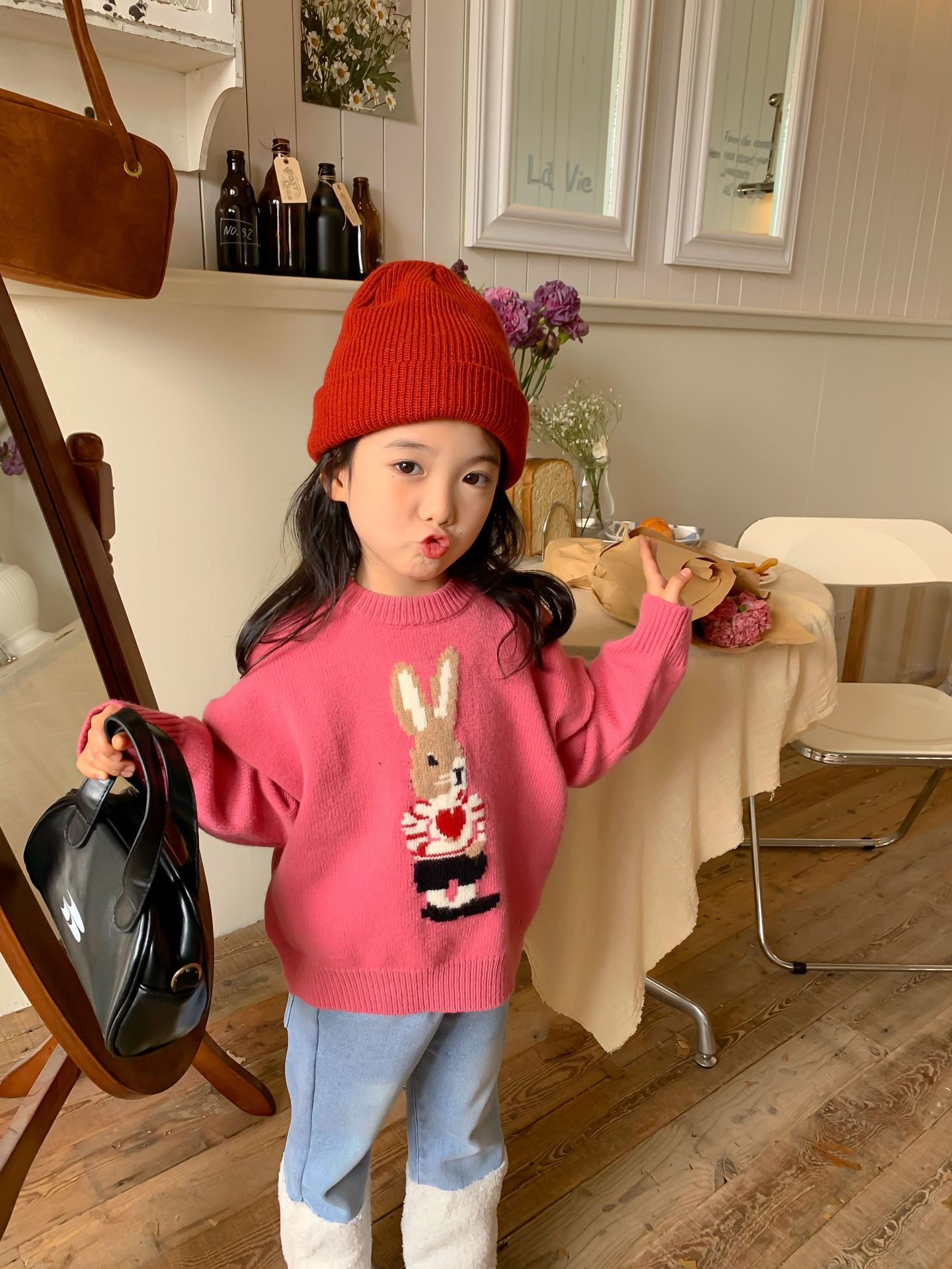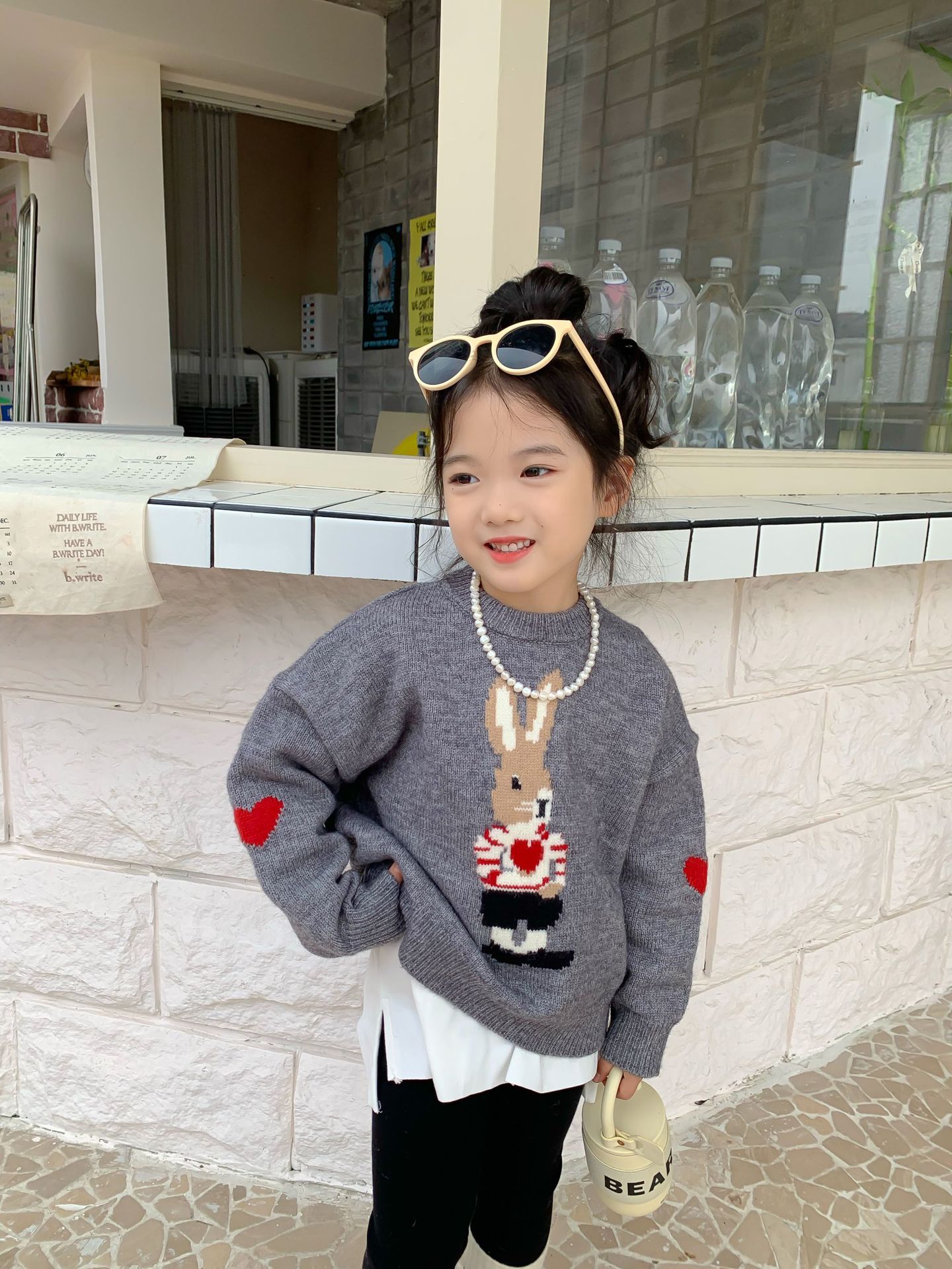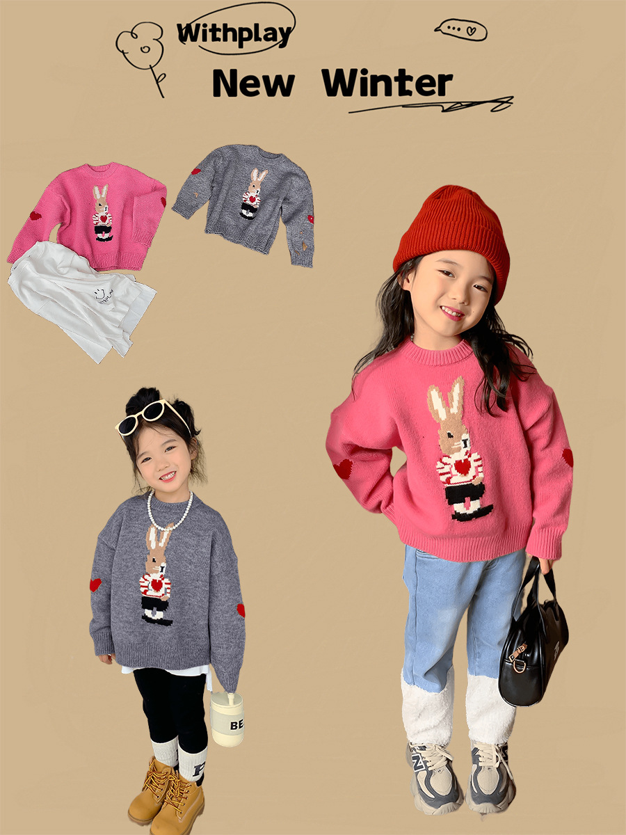 달콤하고 신 가을과 겨울 신상품 소년과 소녀 토끼 사랑 스웨터 아기 만화 안티 필링 스웨터스토어 가기