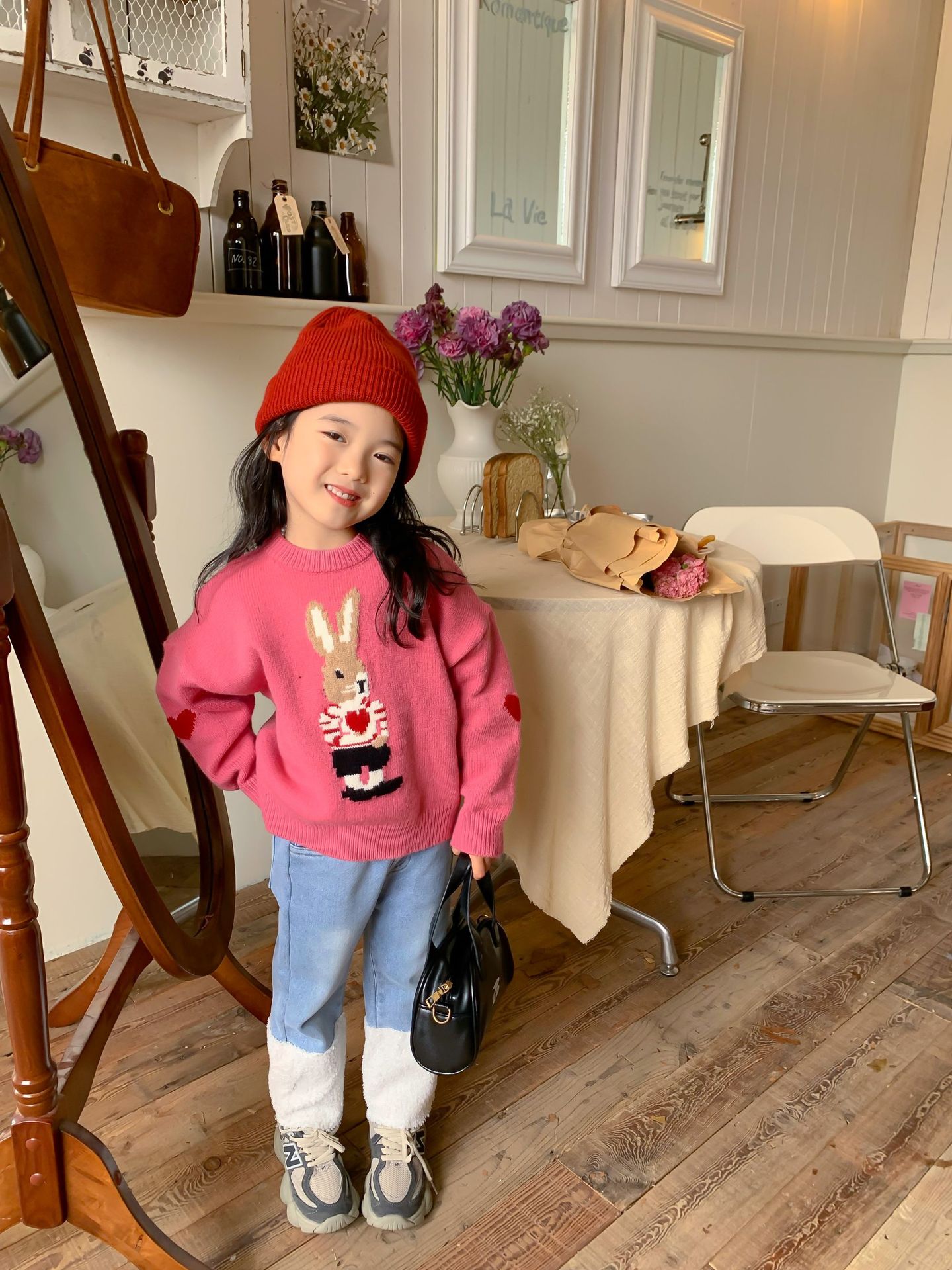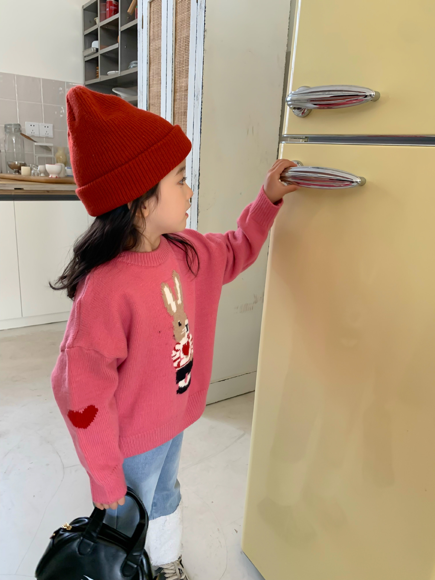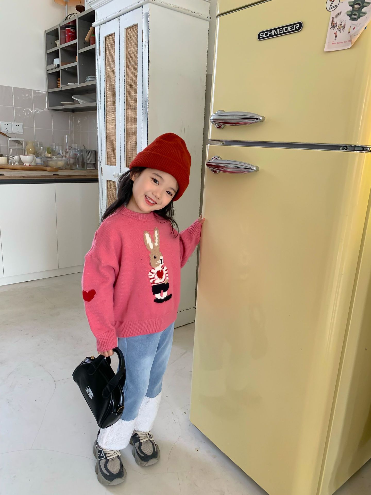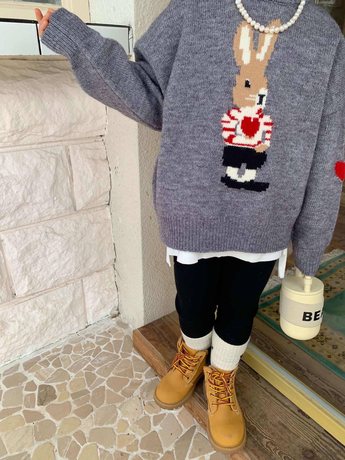 달콤하고 신 가을과 겨울 신상품 소년과 소녀 토끼 사랑 스웨터 아기 만화 안티 필링 스웨터스토어 가기