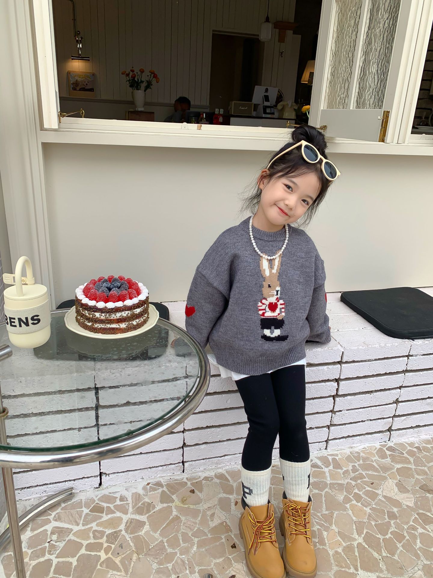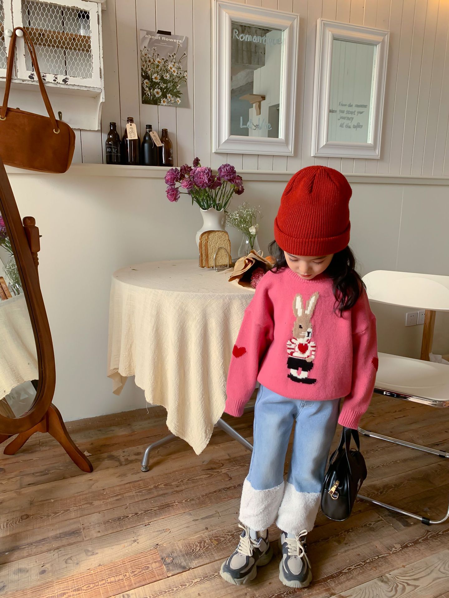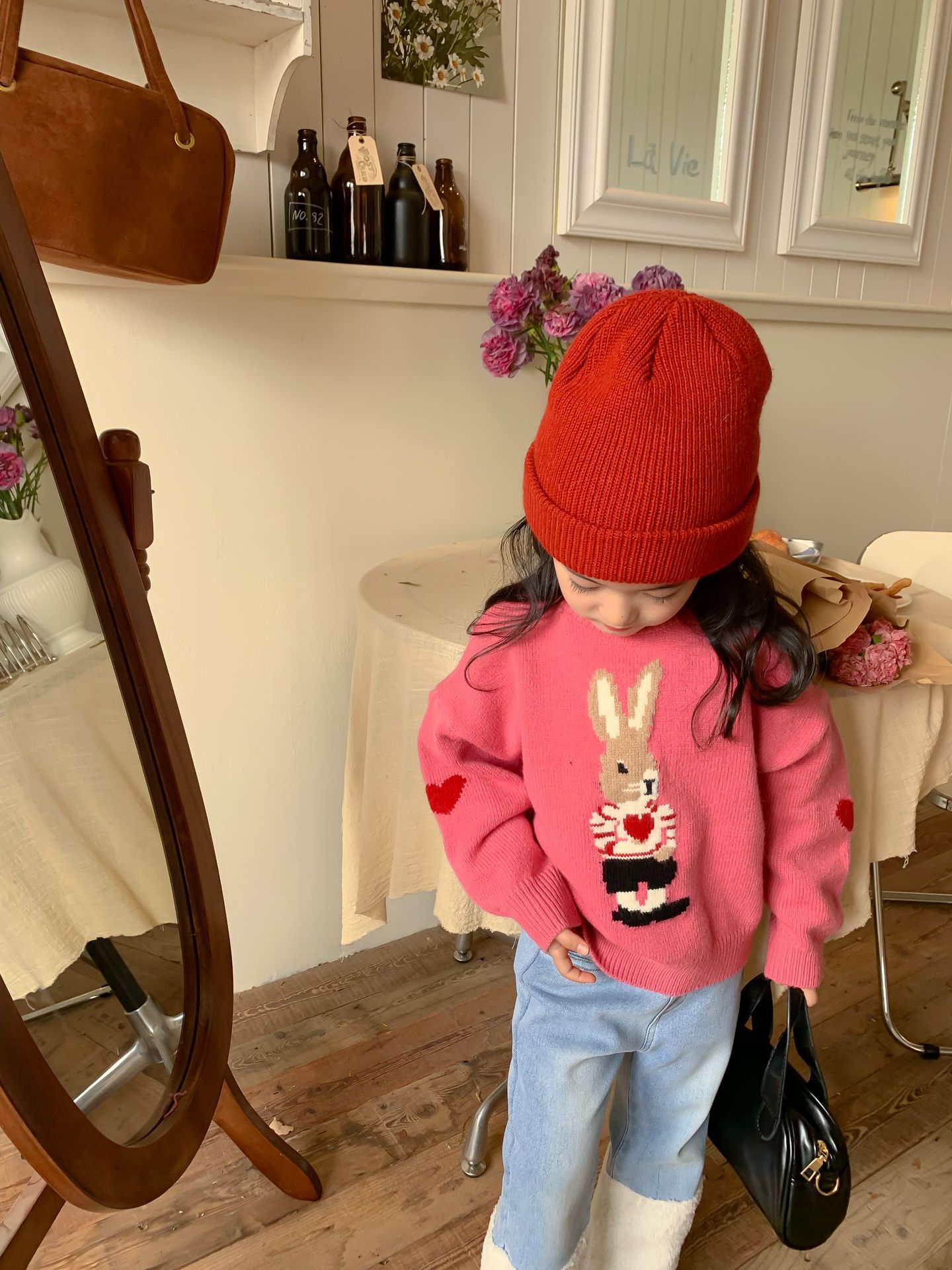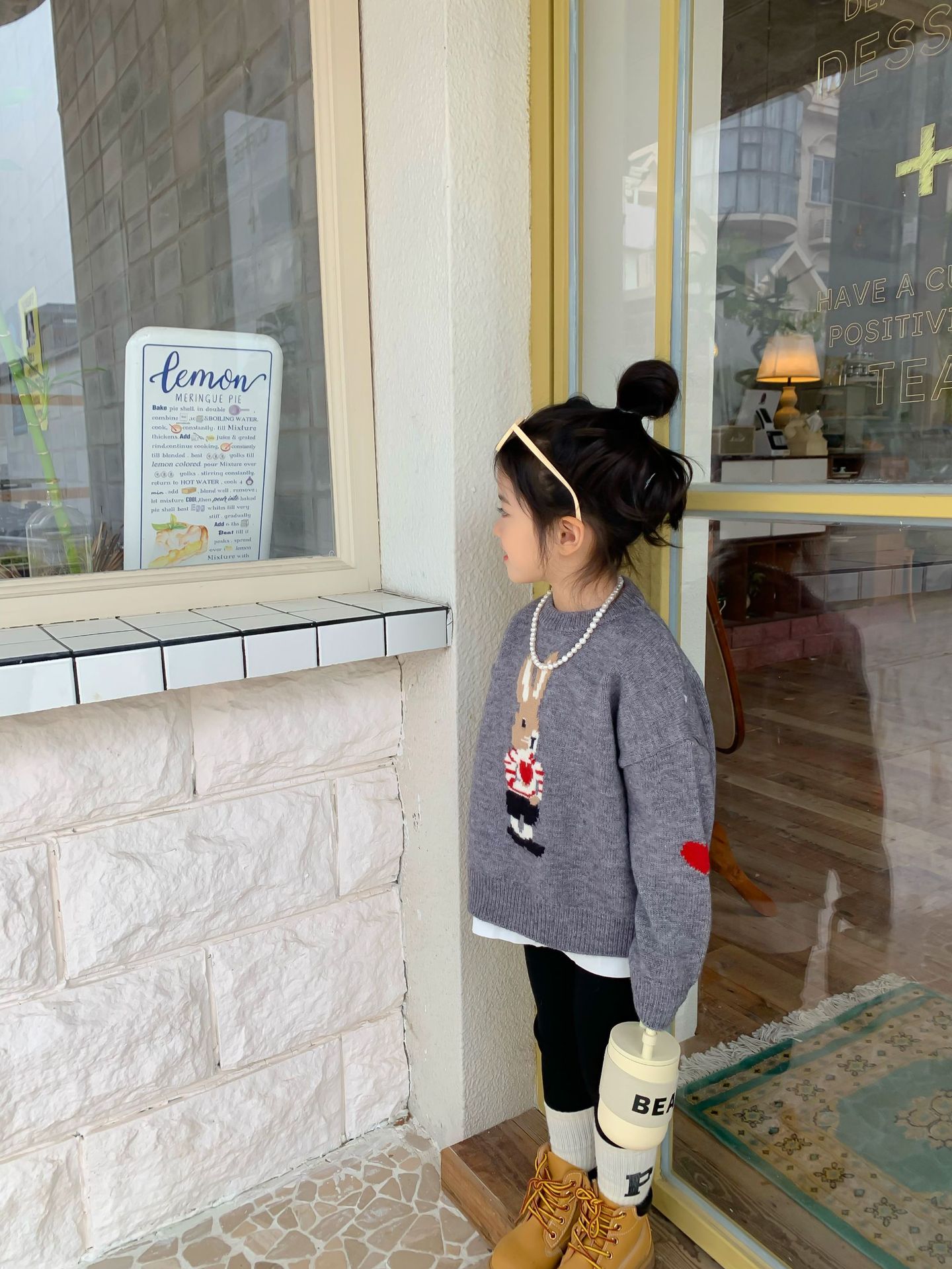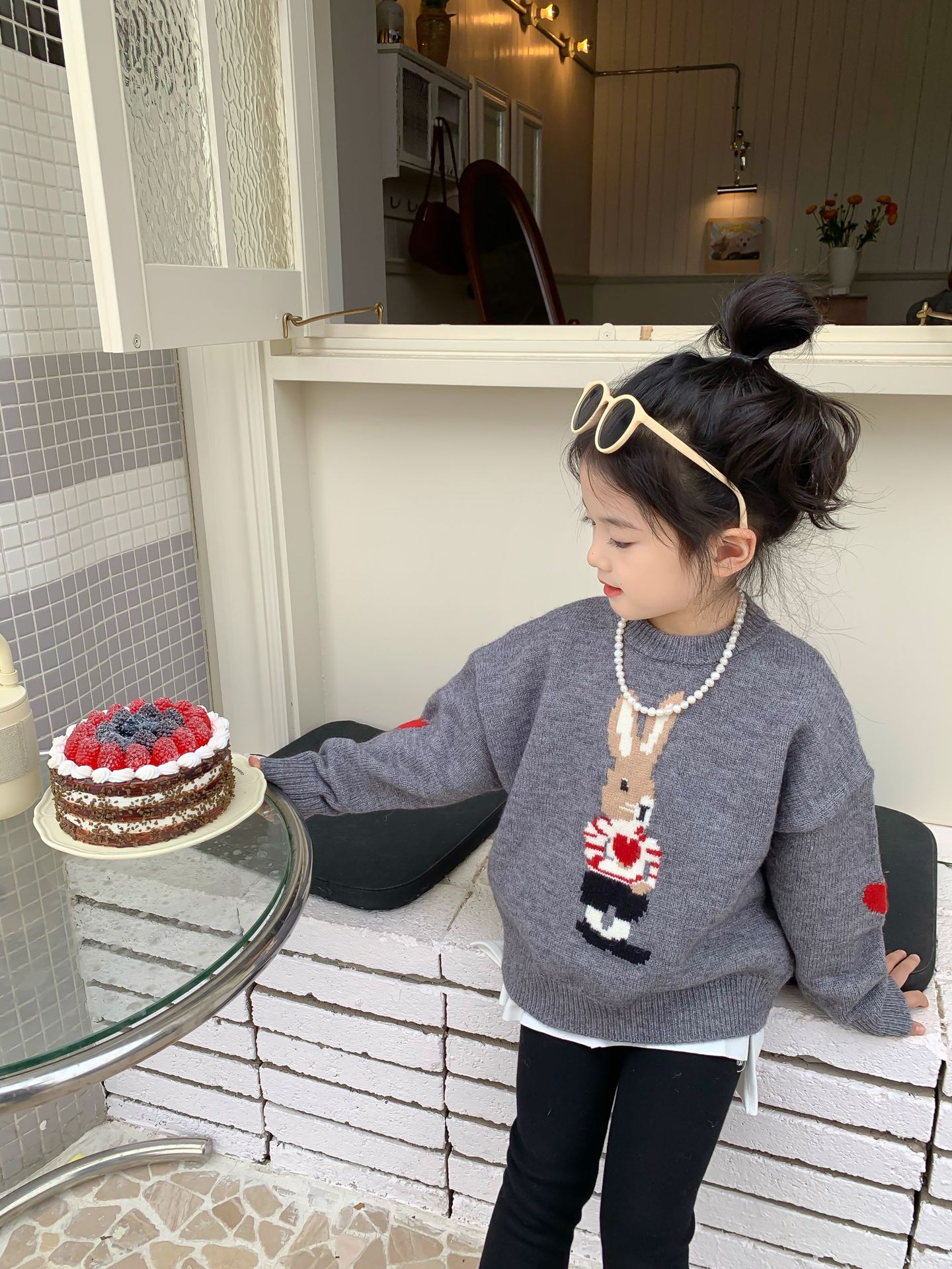 달콤하고 신 가을과 겨울 신상품 소년과 소녀 토끼 사랑 스웨터 아기 만화 안티 필링 스웨터스토어 가기