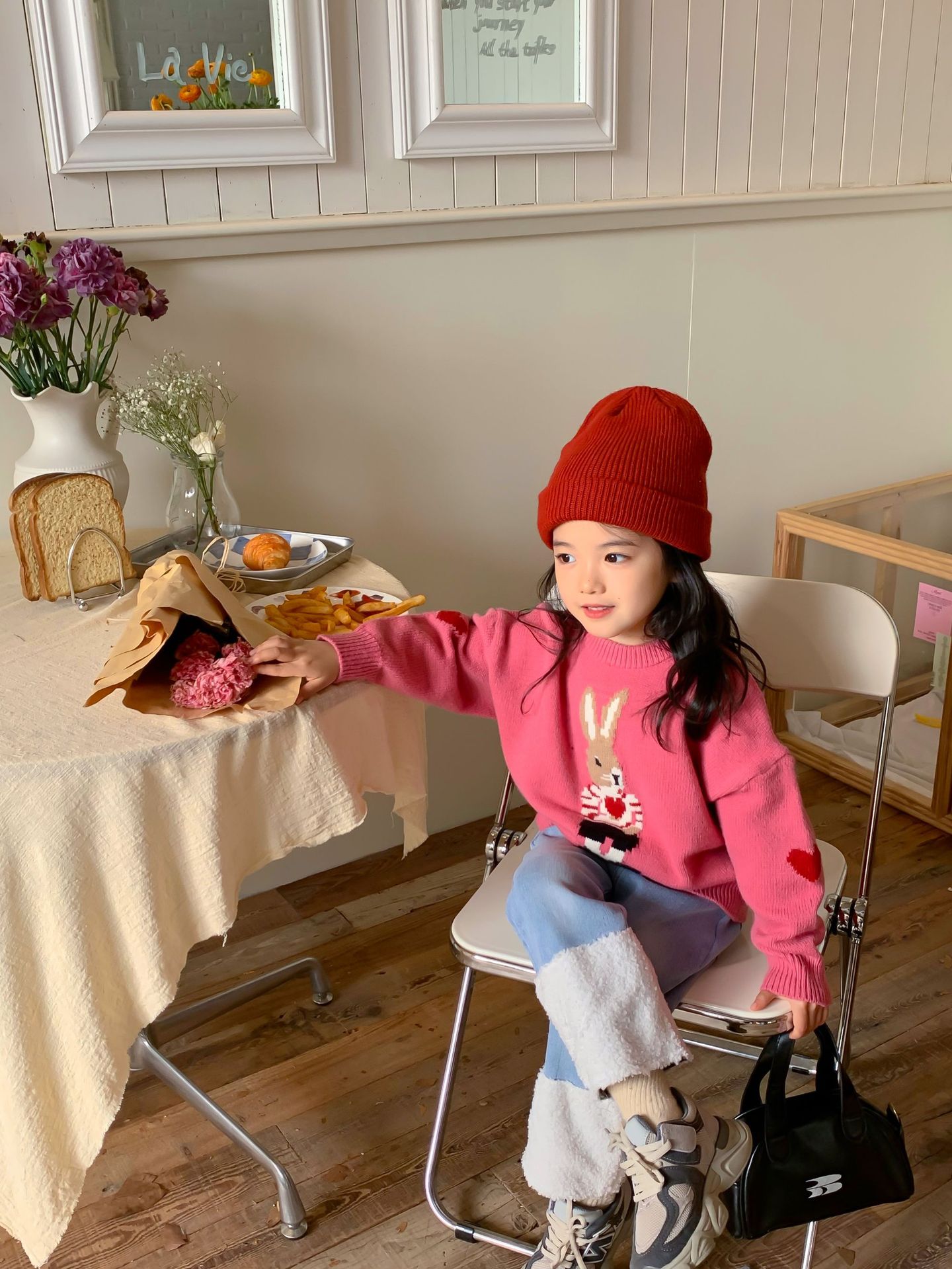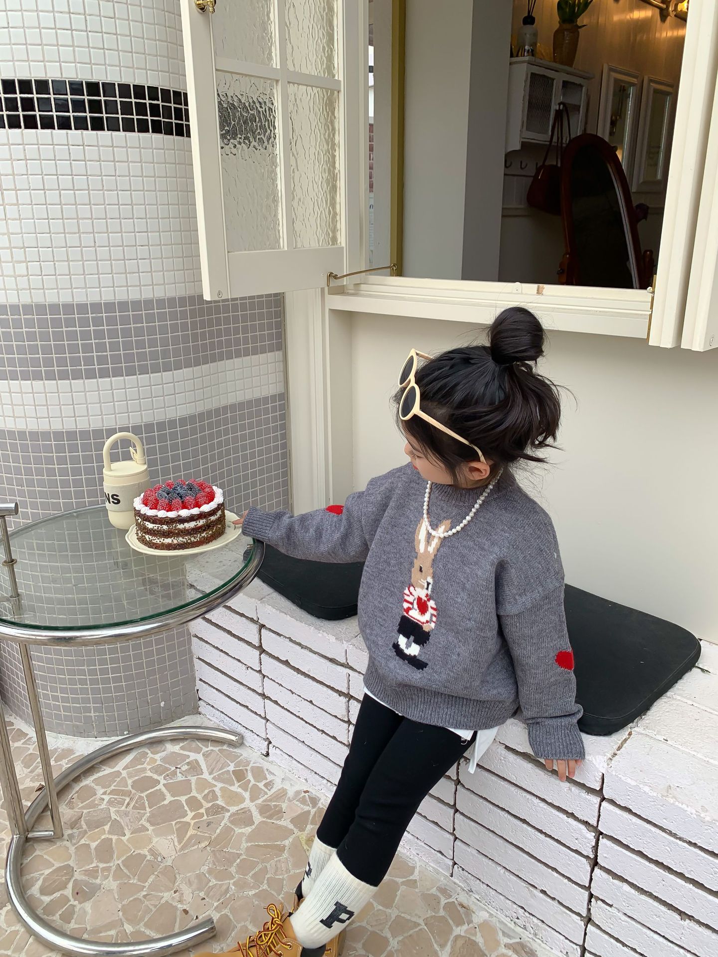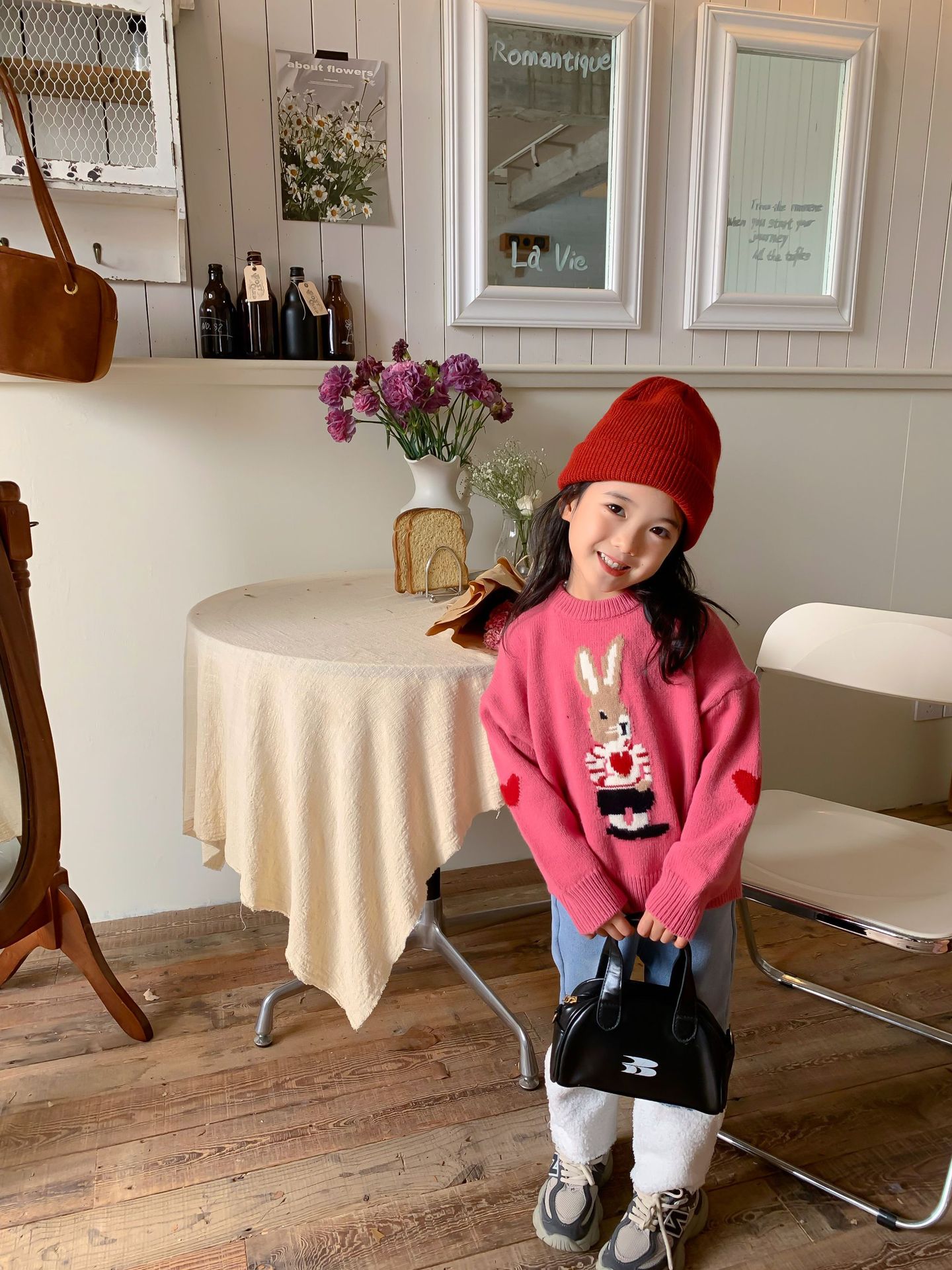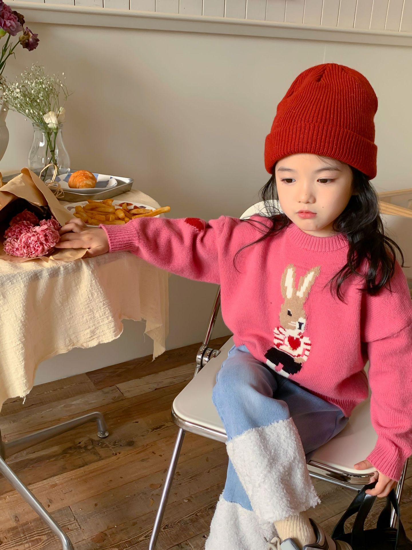 달콤하고 신 가을과 겨울 신상품 소년과 소녀 토끼 사랑 스웨터 아기 만화 안티 필링 스웨터스토어 가기