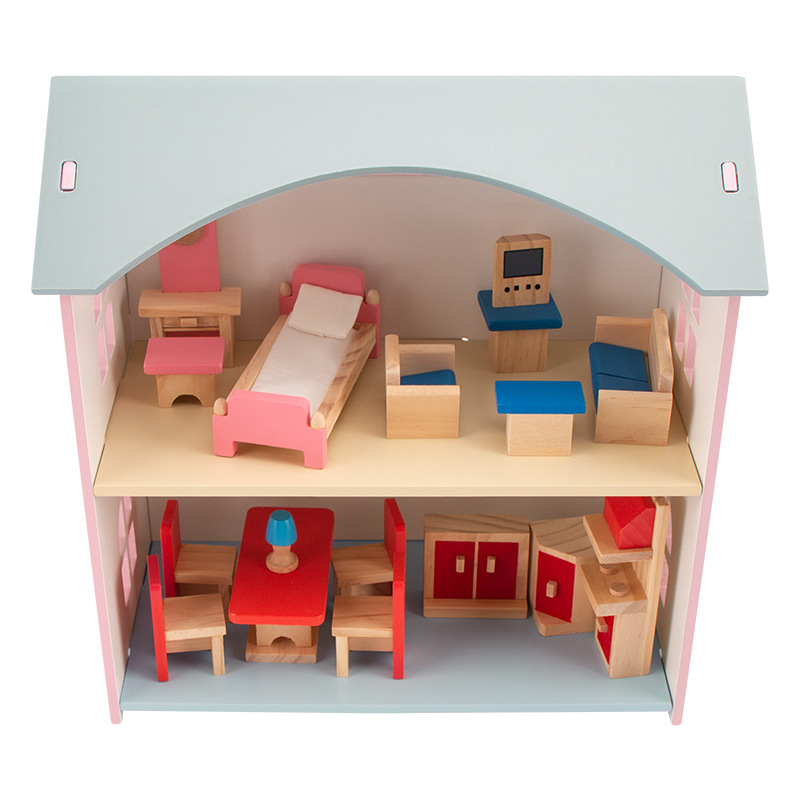 어린이 핑크 블루 더블 레이어 인형 집 작은 집 오두막 장식 장면 미니 가구 어린이 장난감스토어 가기