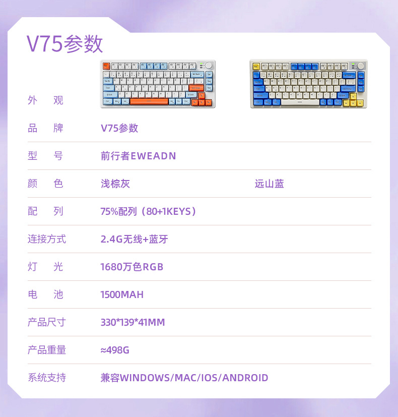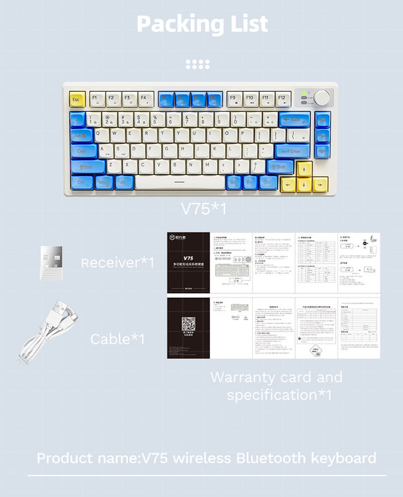 선두 주자 V75 무선 블루투스 키보드 기계 느낌 게임 사무실 음소거 키보드 마우스 휴대용 노트북 데스크탑스토어 가기