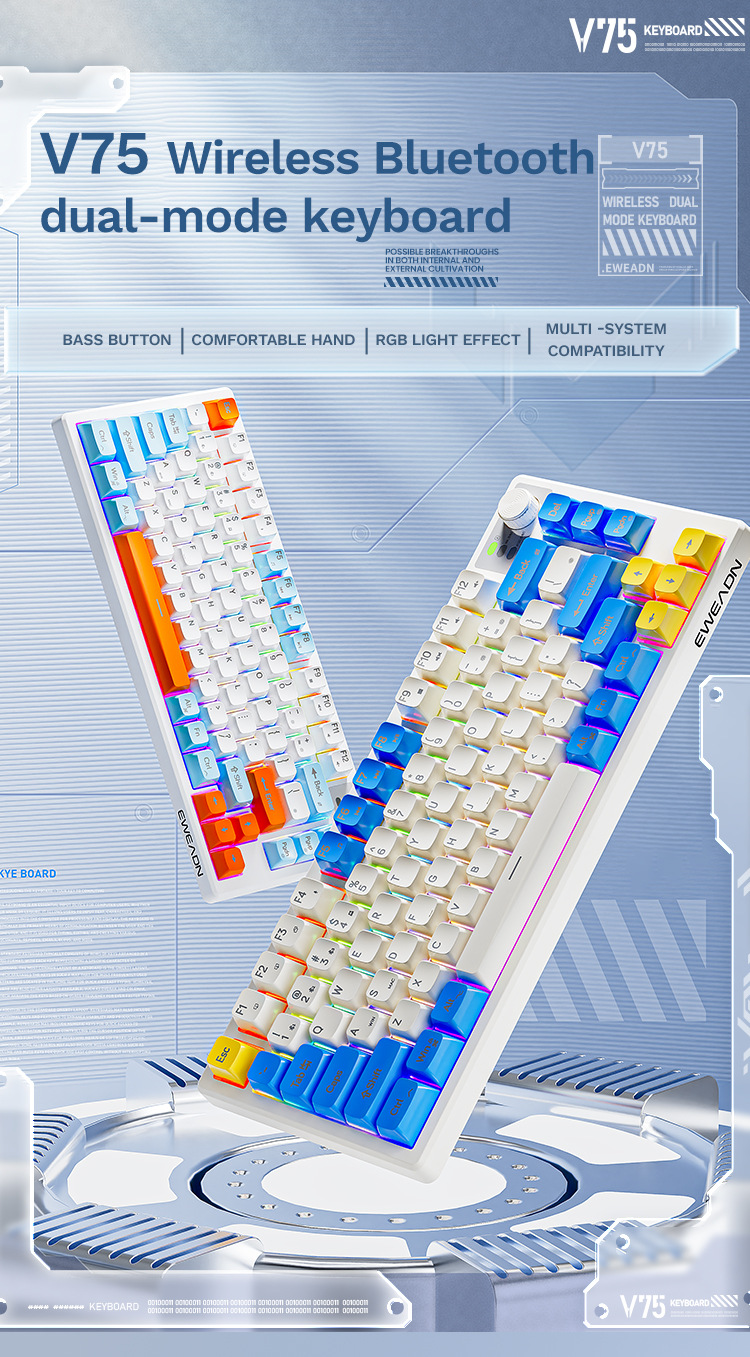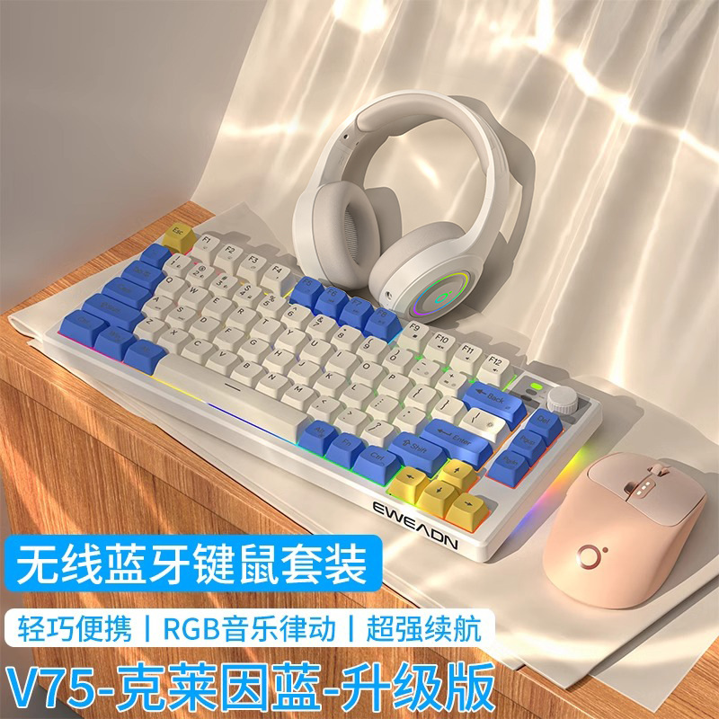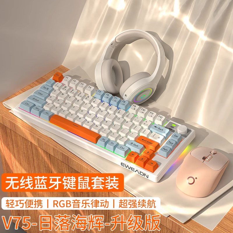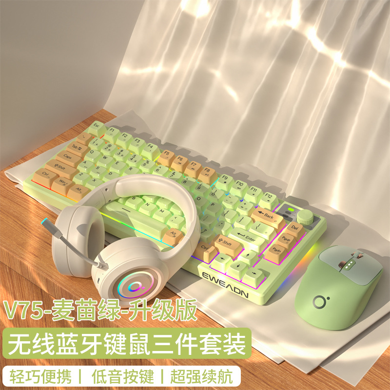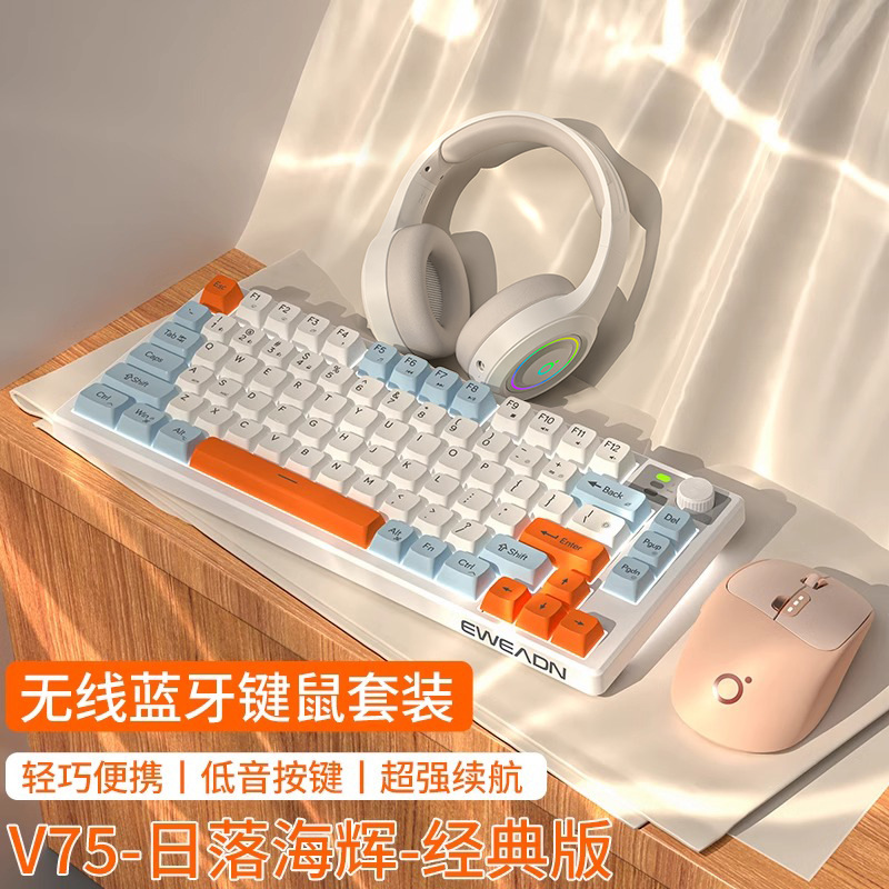 선두 주자 V75 무선 블루투스 키보드 기계 느낌 게임 사무실 음소거 키보드 마우스 휴대용 노트북 데스크탑