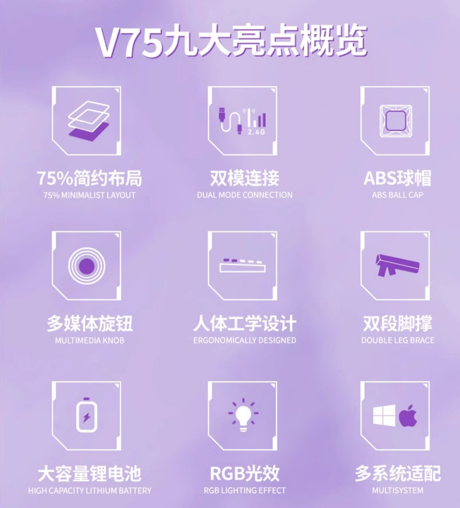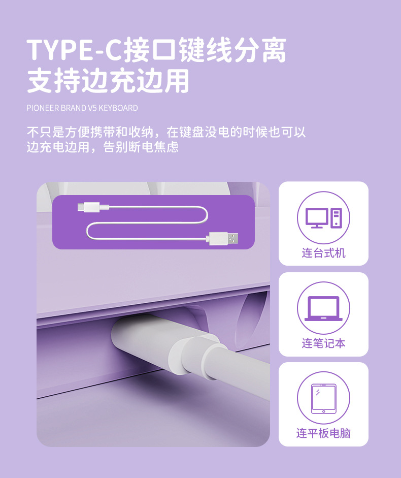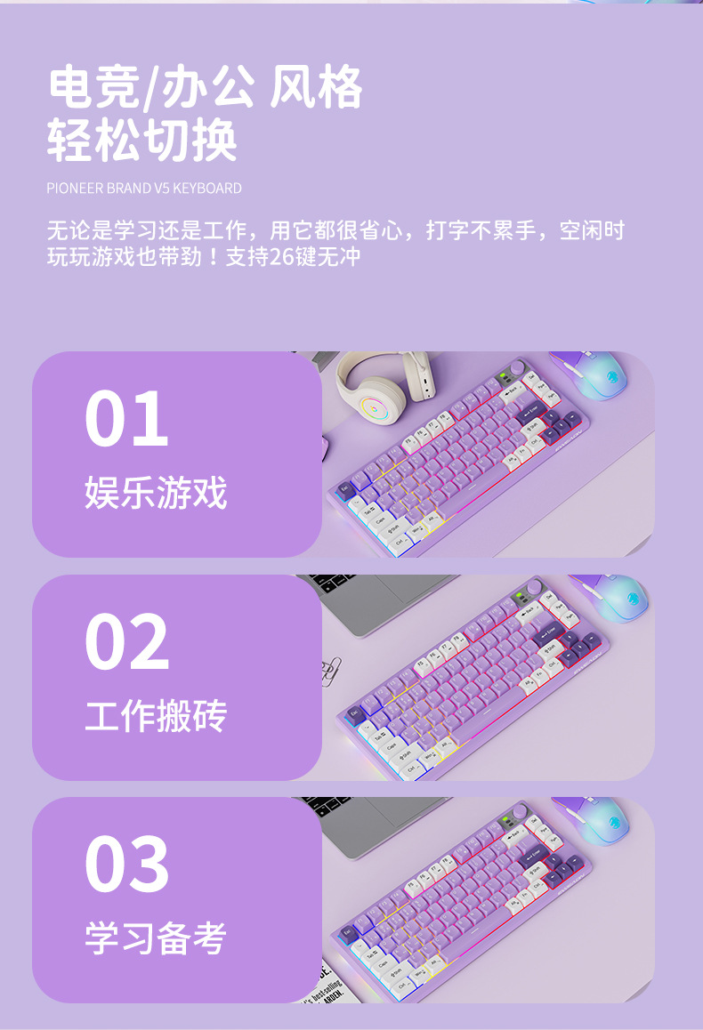 • Primrose 보라색 세트 [블루투스 5.0 2.4G 무선] 클래식 버전