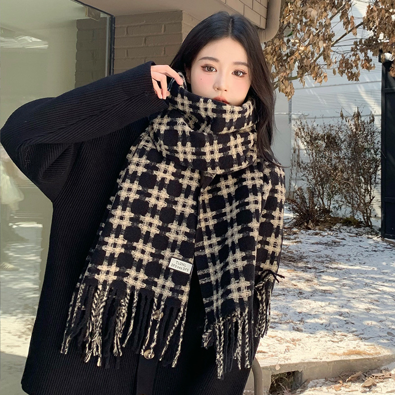 간단한 패션 독특한 격자 무늬 인쇄 겨울 캐주얼 방한 목 따뜻한 스카프 야외 술 스카프스토어 가기