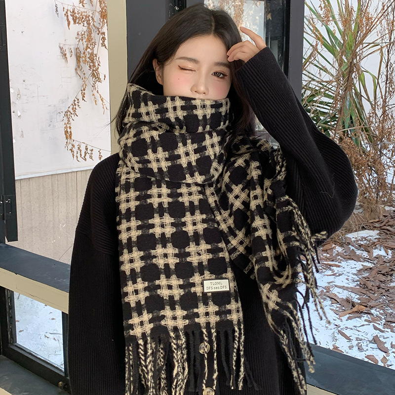 간단한 패션 독특한 격자 무늬 인쇄 겨울 캐주얼 방한 목 따뜻한 스카프 야외 술 스카프