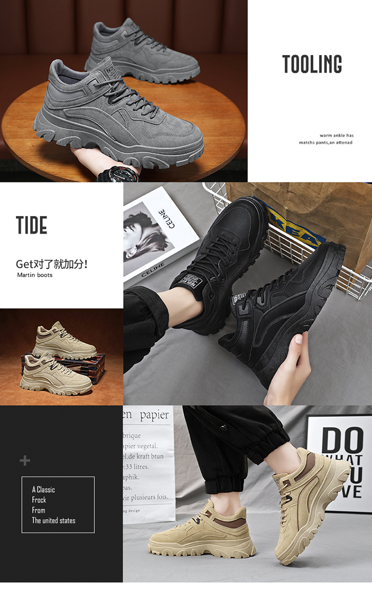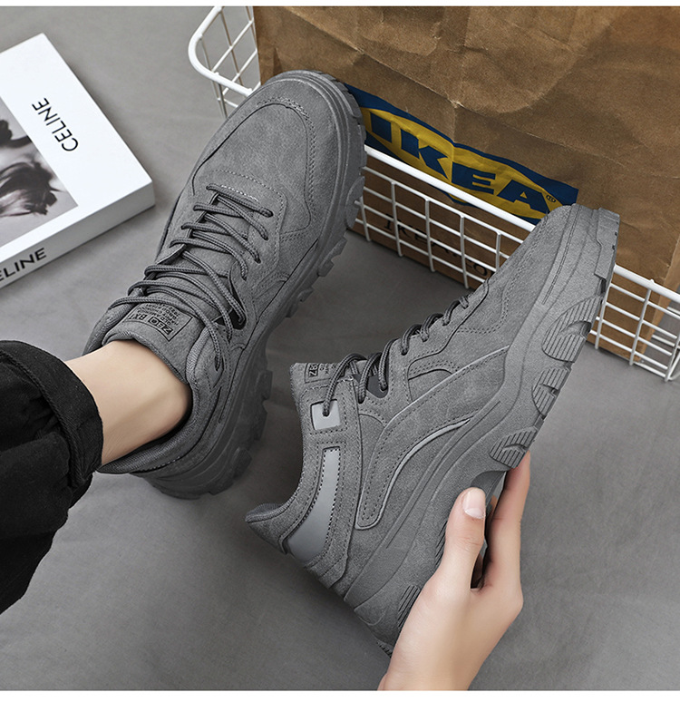 가을 남성 신발 새로운 통기성 노동 보호 신발 남성용 트렌디 올 매치 두꺼운 밑창 미끄럼 방지 작업복 신발 토레를위한 캐주얼 트렌디 신발스토어 가기