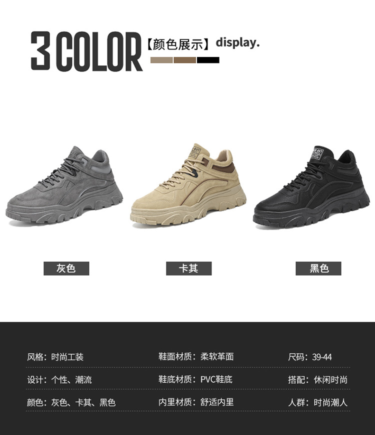 가을 남성 신발 새로운 통기성 노동 보호 신발 남성용 트렌디 올 매치 두꺼운 밑창 미끄럼 방지 작업복 신발 토레를위한 캐주얼 트렌디 신발
