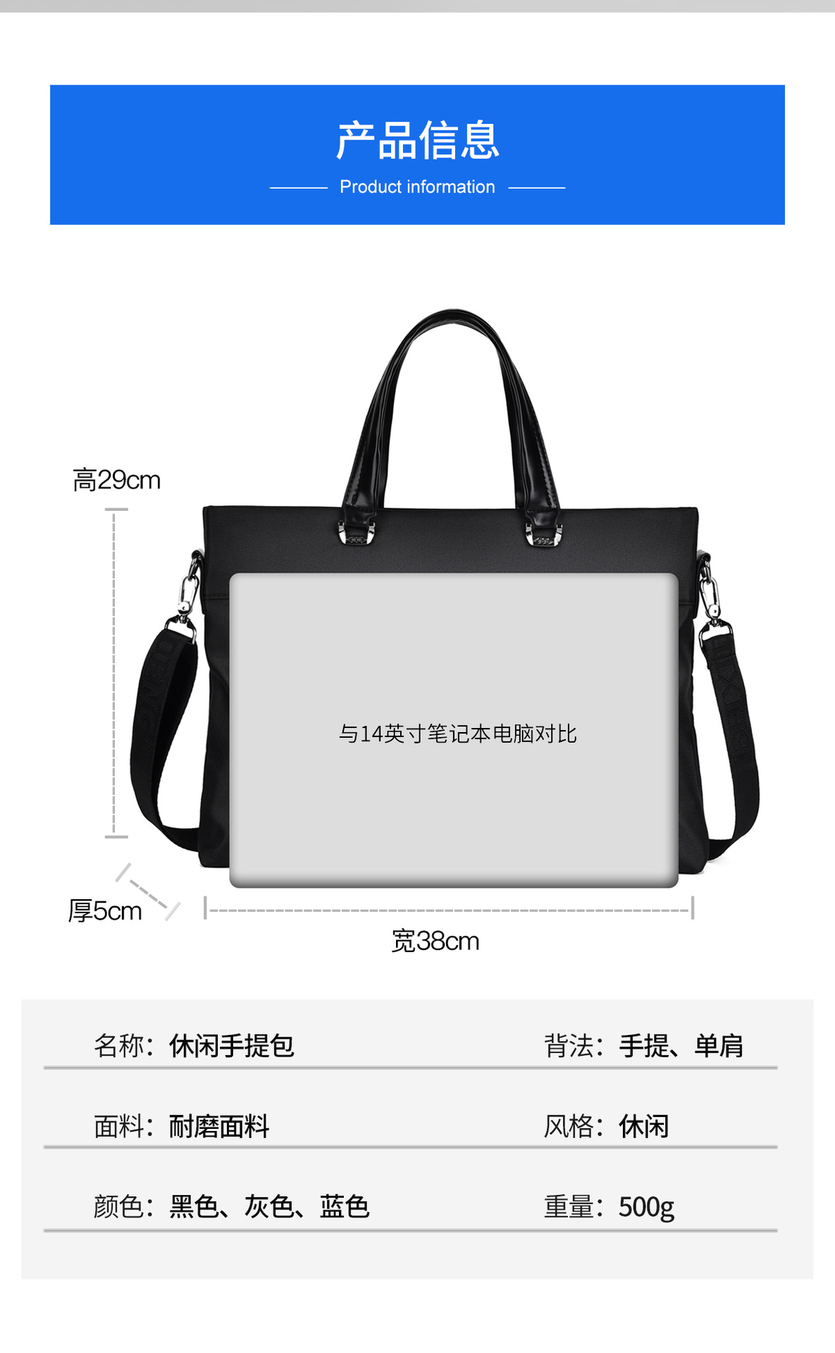 남자의 옥스포드 천 핸드백 비즈니스 사무실 파일 가방 대용량 컴퓨터 가방 회의 재료 A4 핸드백 남자스토어 가기