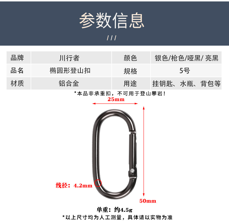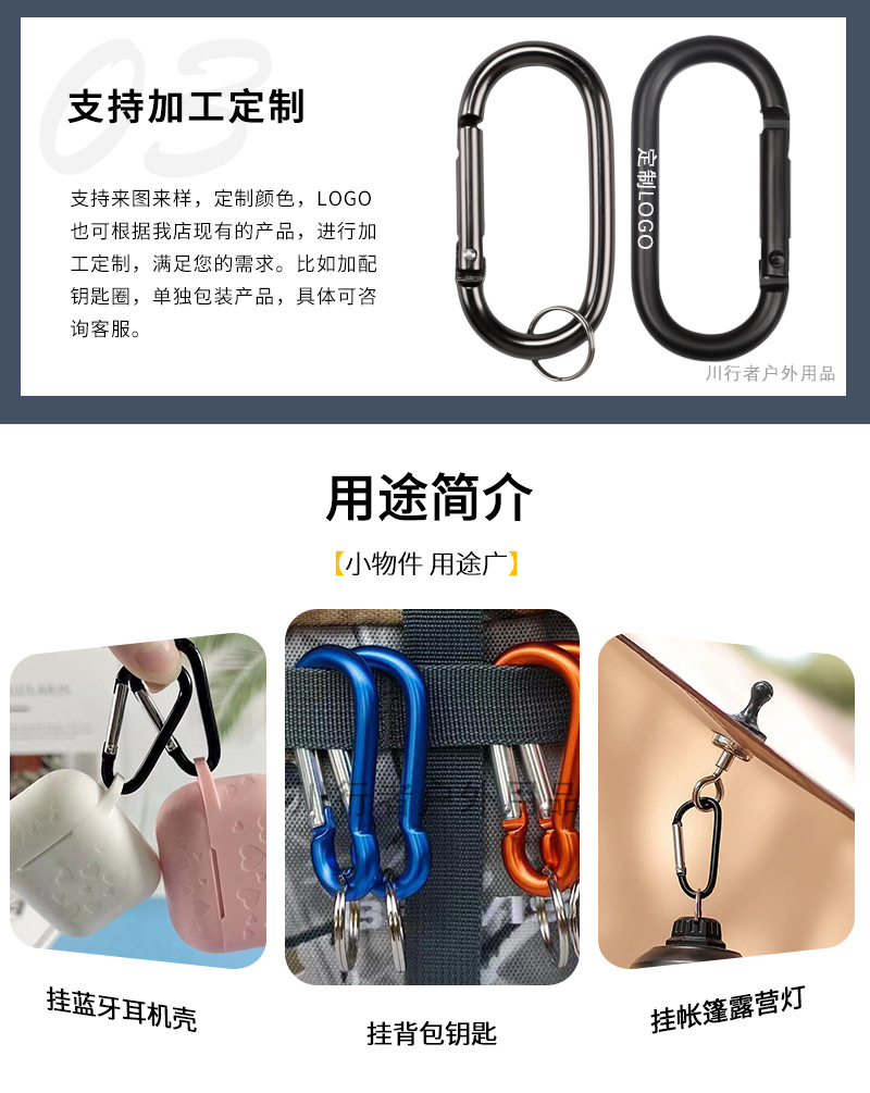 No.5 활주로 유형 등산 버클 알루미늄 합금 후크 스프링 후크 타원형 금속 버클 손실 방지 장치 세트 도매 재고스토어 가기