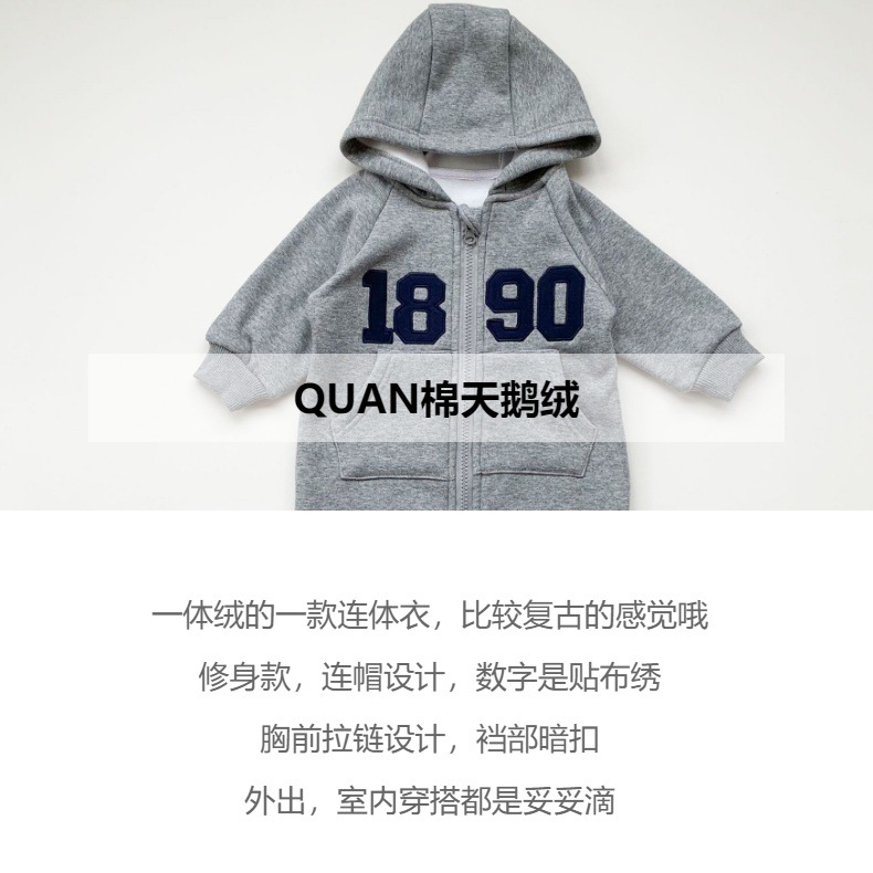 아기 점프 수트 2024 겨울 새 아기가 등반 옷 외출 신생아 캐주얼 복고풍 편지 후드스토어 가기