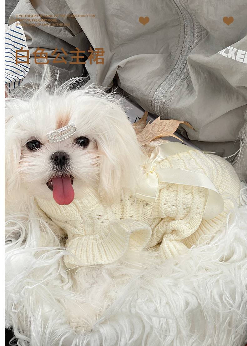 애완 동물 개 개 옷 가을과 겨울 작은 개 공주 몰타 원피스 고양이 따뜻한 머리 방지 테디 베어스토어 가기
