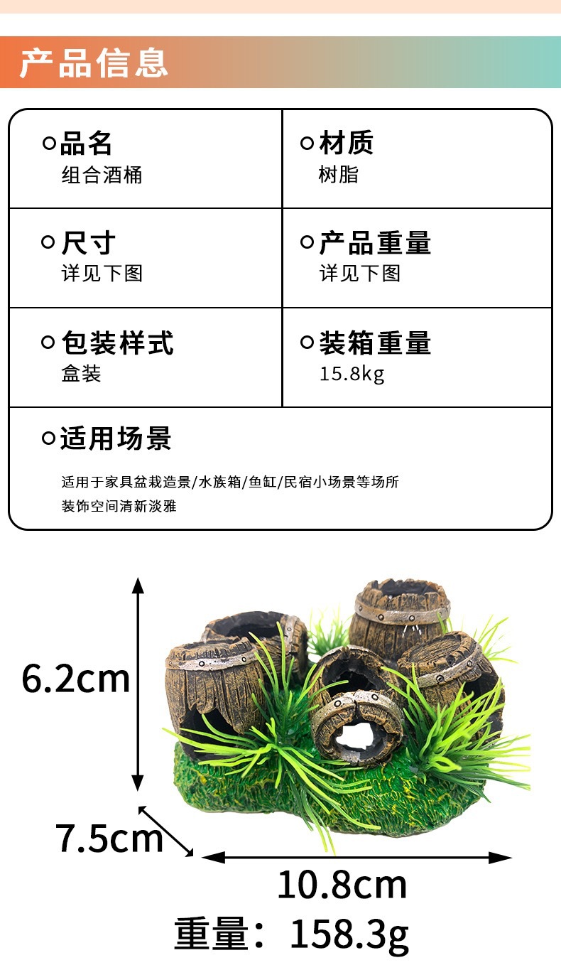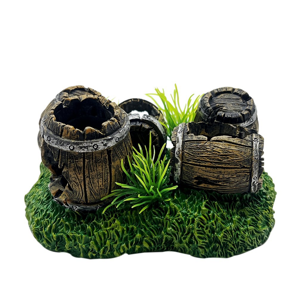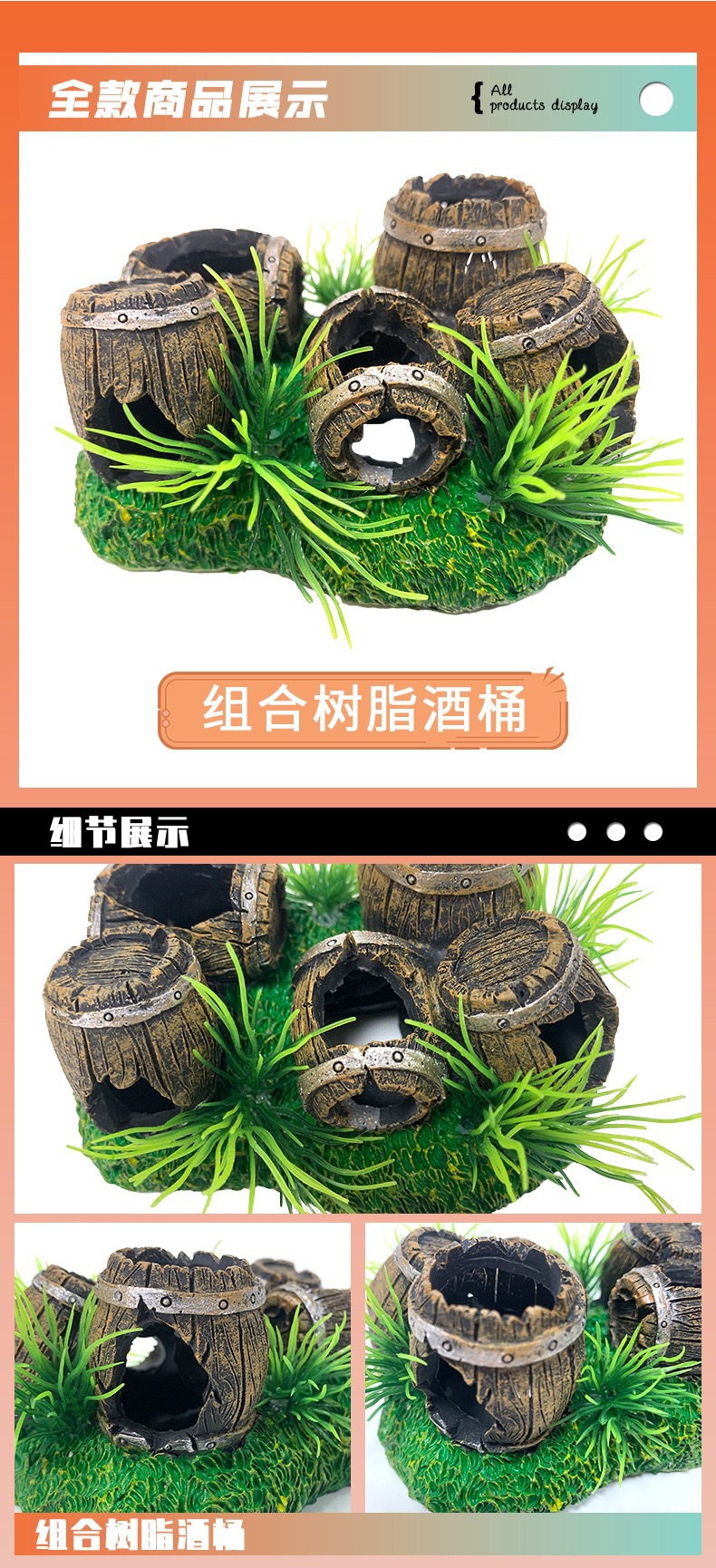 물고기 탱크 조합 와인 양동이 장식 새로운 수족관 장식 풍경 와인 양동이 나무 버킷 수지 탈출 집 박스형 깨진 와인 양동이