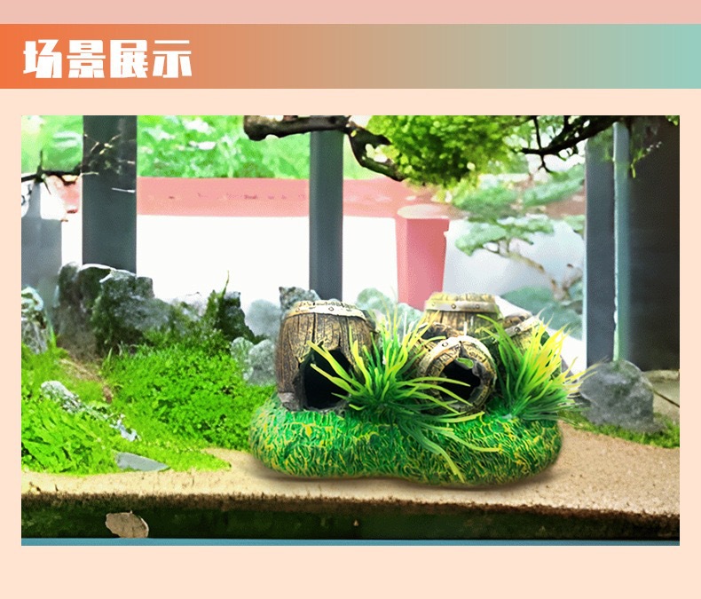 물고기 탱크 조합 와인 양동이 장식 새로운 수족관 장식 풍경 와인 양동이 나무 버킷 수지 탈출 집 박스형 깨진 와인 양동이스토어 가기