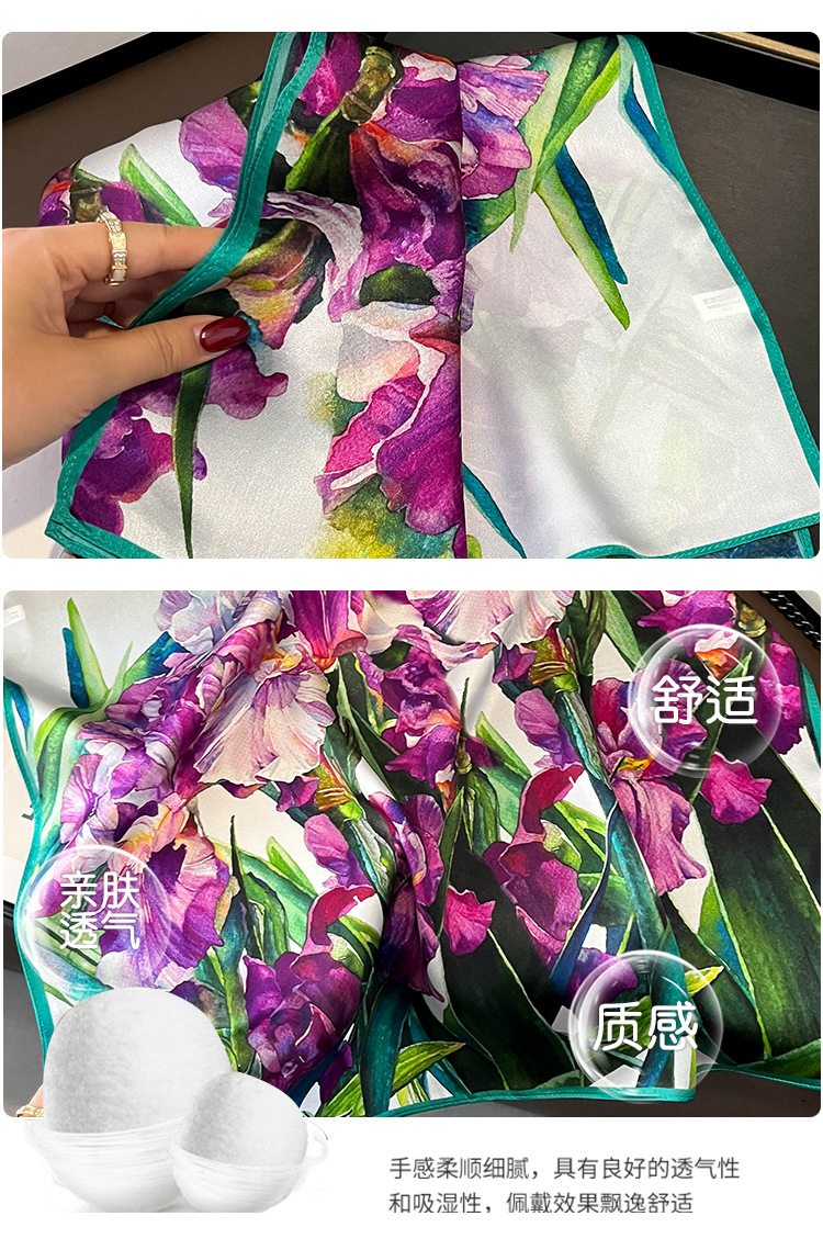 100 뽕나무 실크 빈티지 퍼플 플라워 트릴 실크 스카프 작은 사각 스카프 모든 일치 장식 스카프 작은 스카프