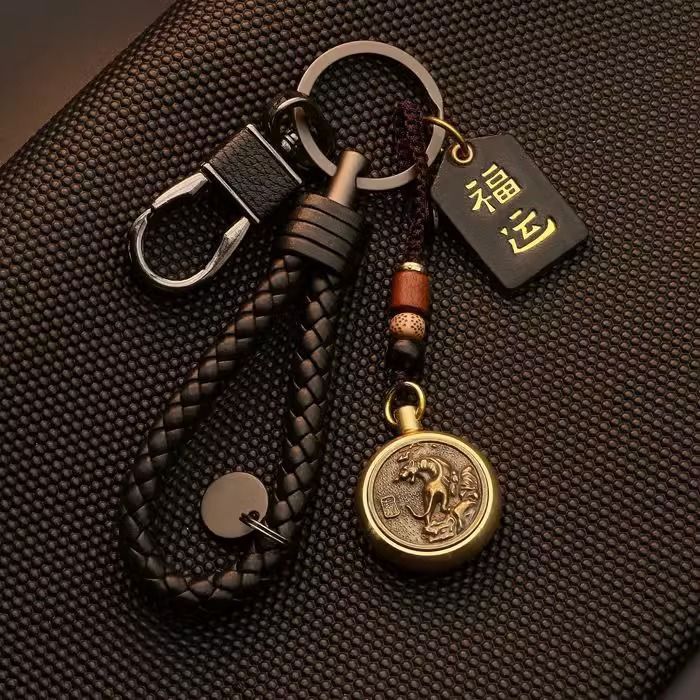 남성과 여성의 자동차 키 체인 황동 조디악 키 체인 수제 펜던트 복고풍 창조적 인 남성 송금 핸들