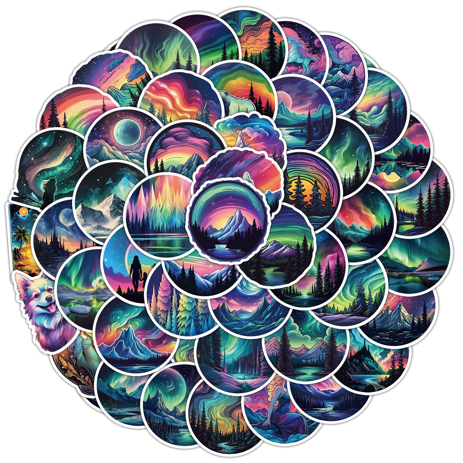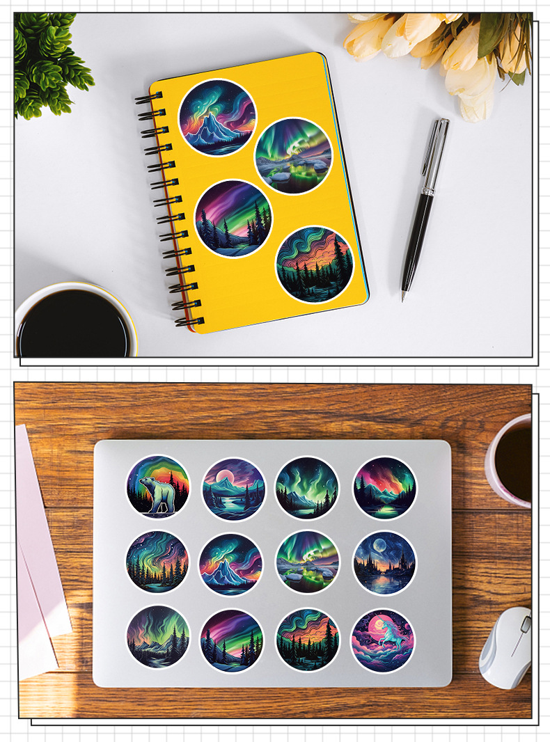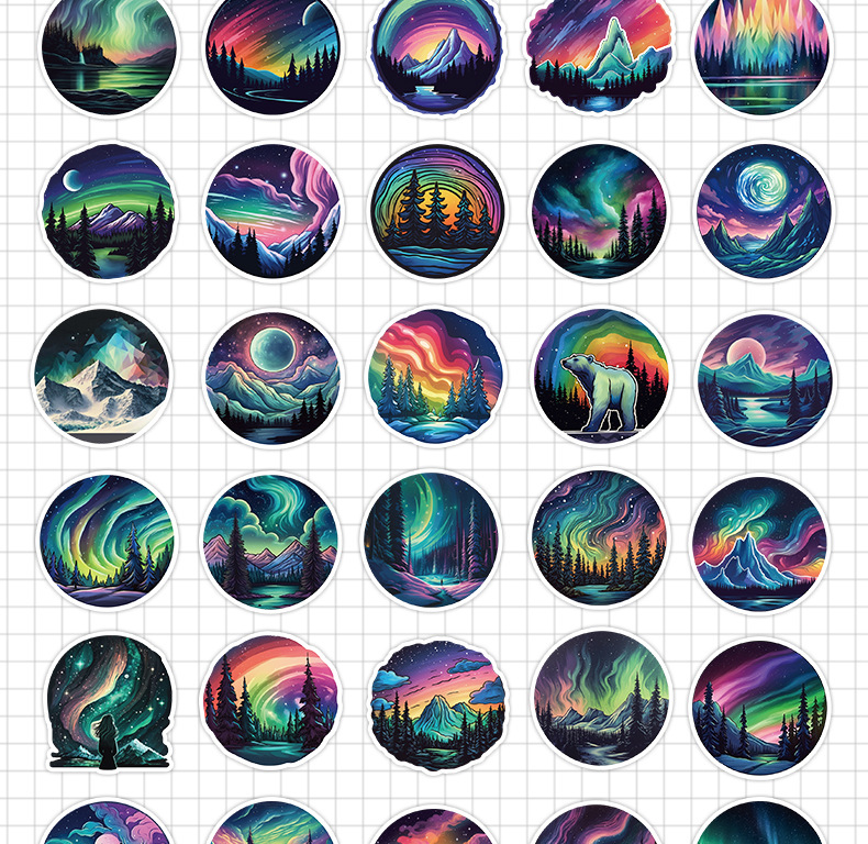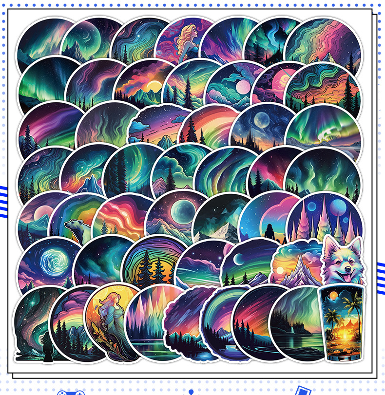 50 오로라 라이트 낙서 스티커 자동차 휴대 전화 컴퓨터 장식 작은 스티커 방수 창조적 인 노트북 손 계정 스티커스토어 가기