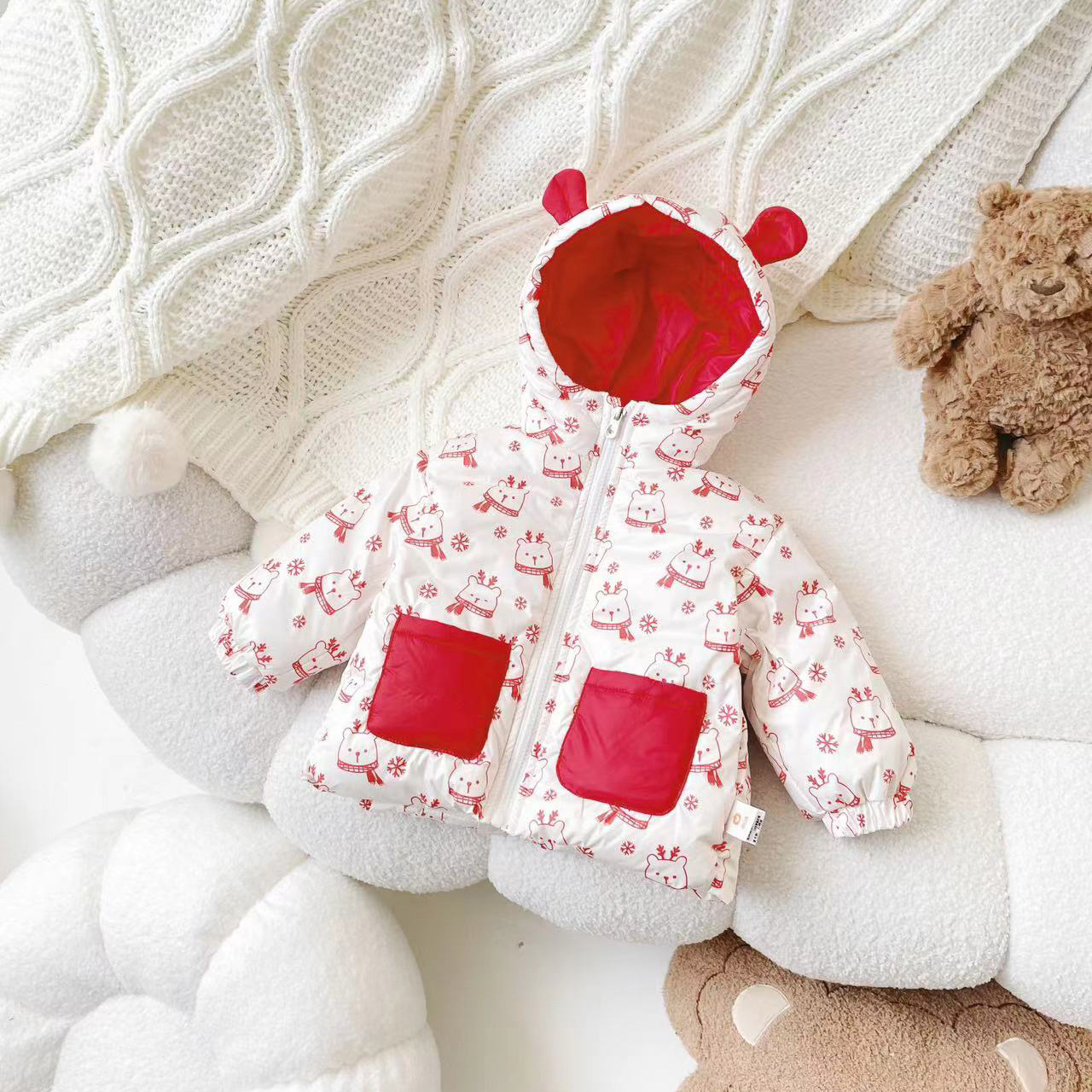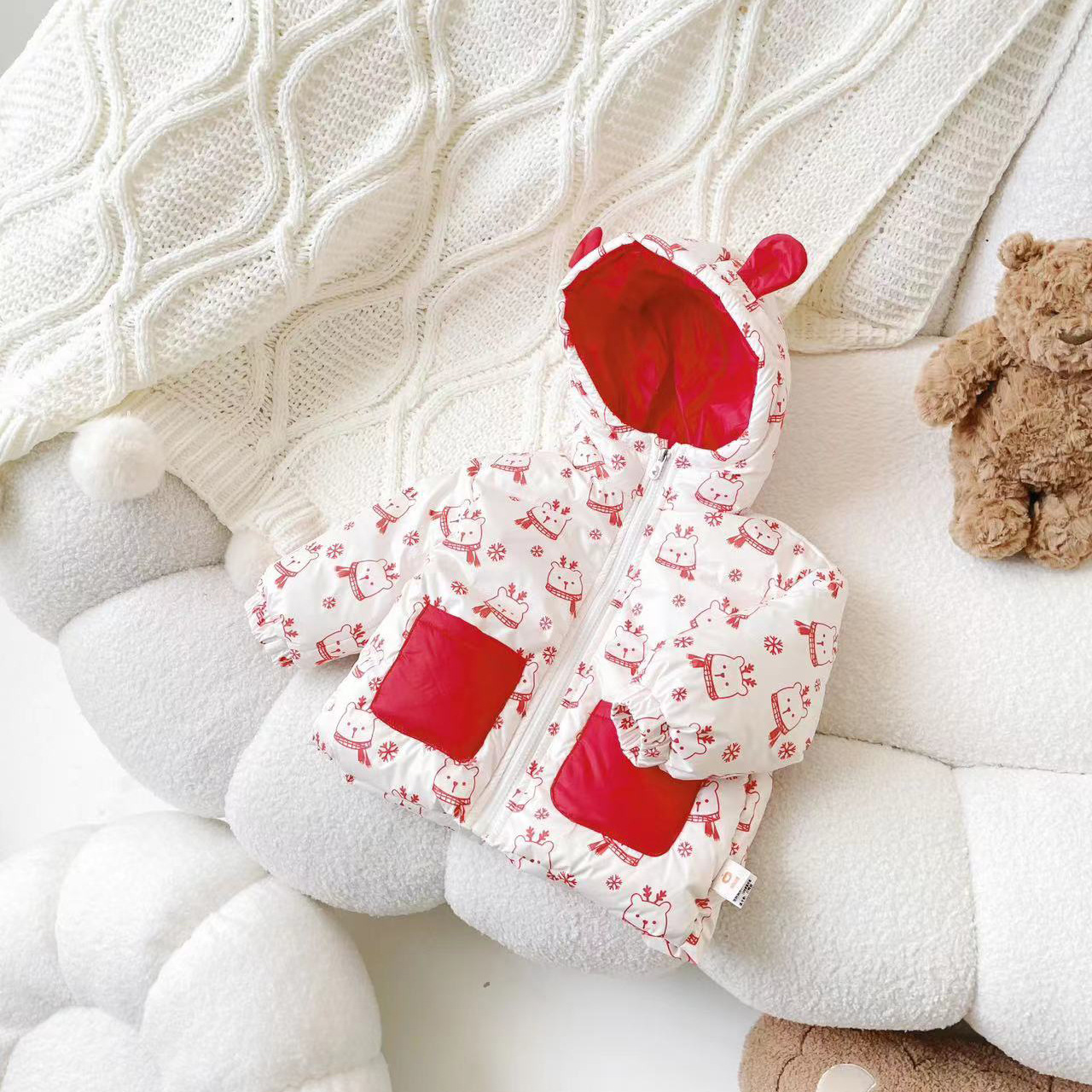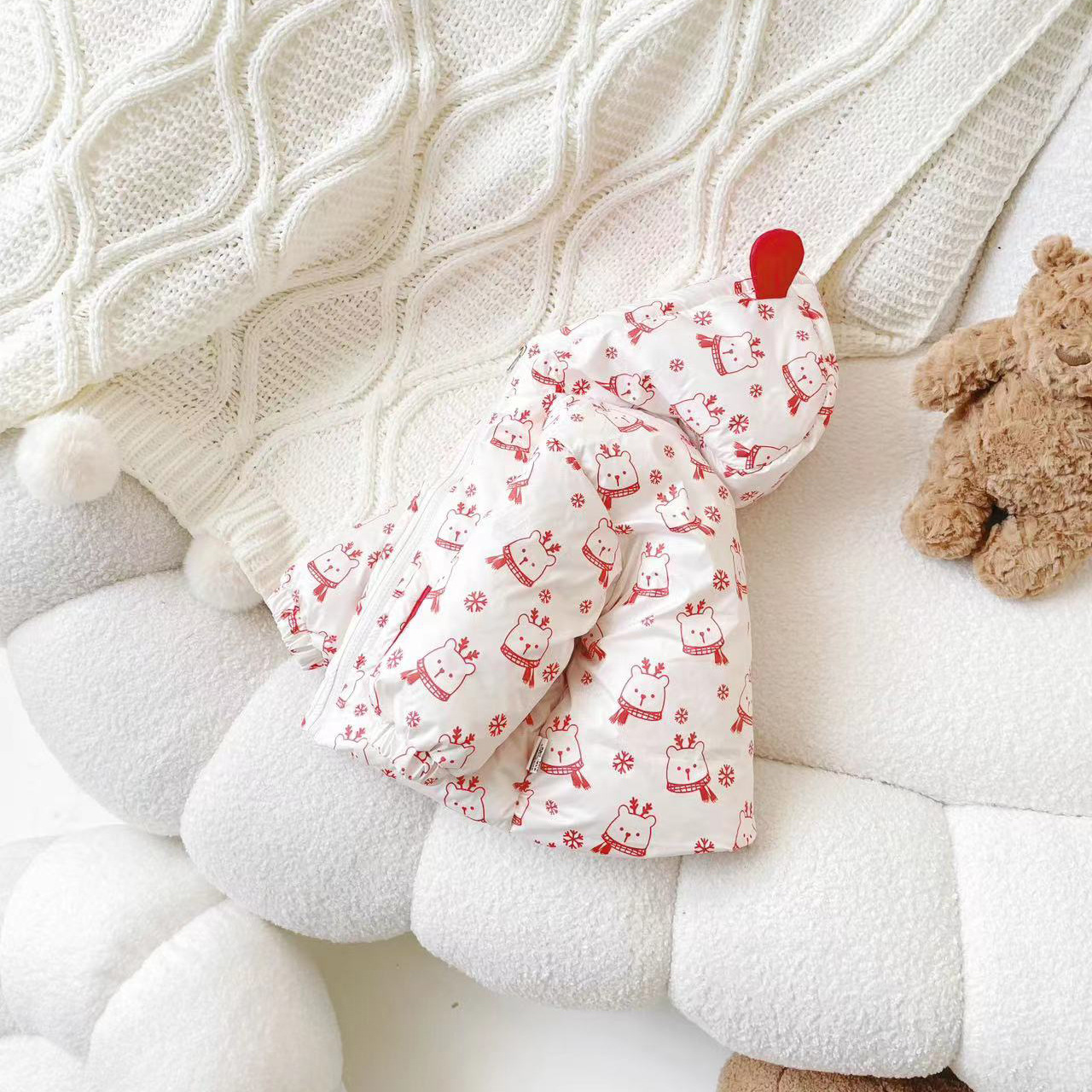 [재고] DW237228 겨울 신상 아동 다운 재킷 신전국 기준 90 화이트 오리 다운 베이비 코트 후드스토어 가기