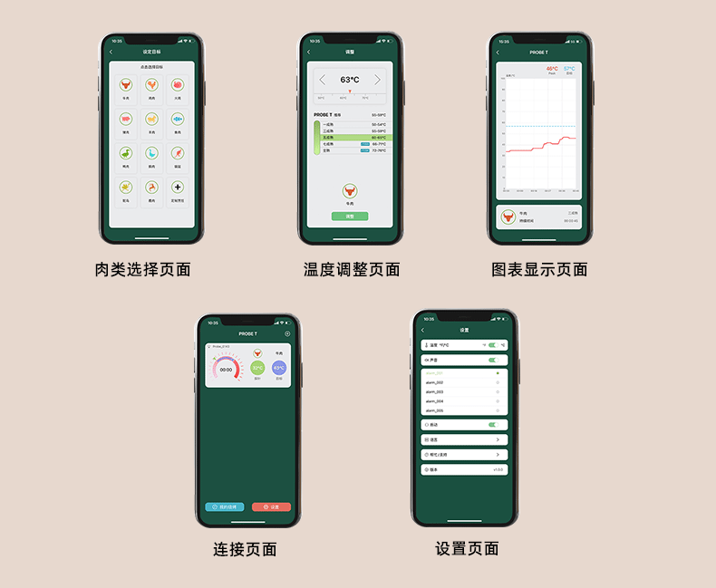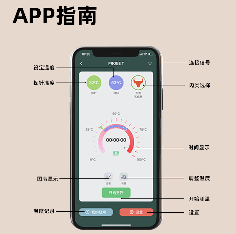 국경 휴대 전화 APP 방수 고기 온도계 주방 오븐 음식 바베큐 스마트 블루투스 무선 도매스토어 가기