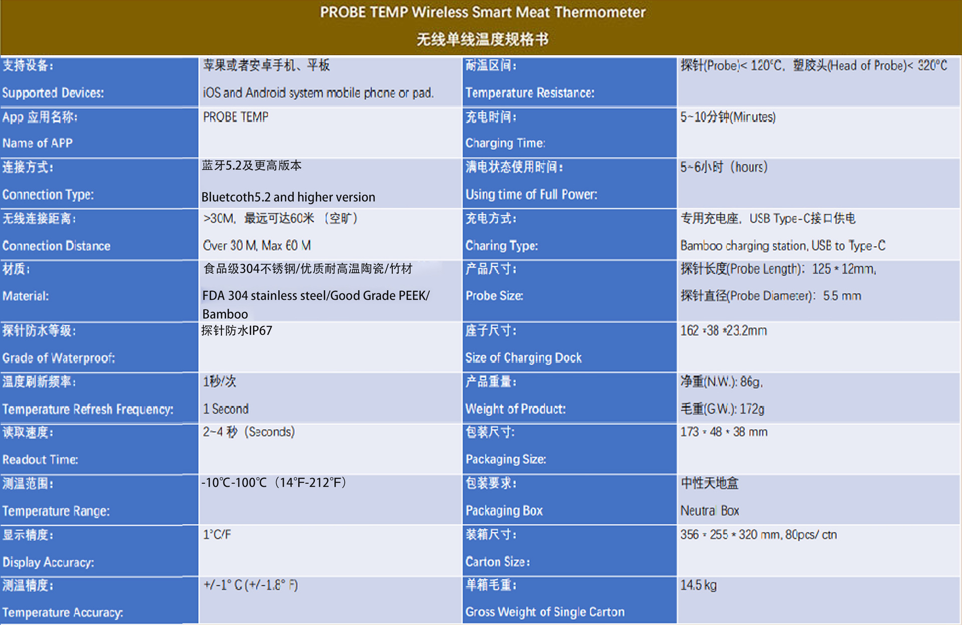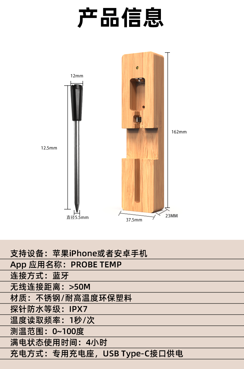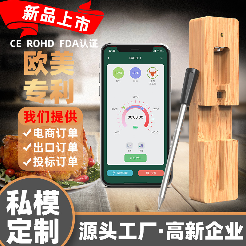 국경 휴대 전화 APP 방수 고기 온도계 주방 오븐 음식 바베큐 스마트 블루투스 무선 도매