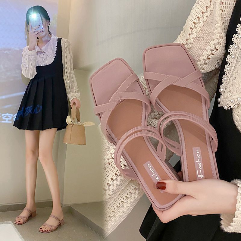 2024 새로운 작은 향기로운 패션 샌들 여성 여름 두꺼운 굽 웨지 슬리퍼 샌들 투웨어 비치 해변 하프 슬리퍼