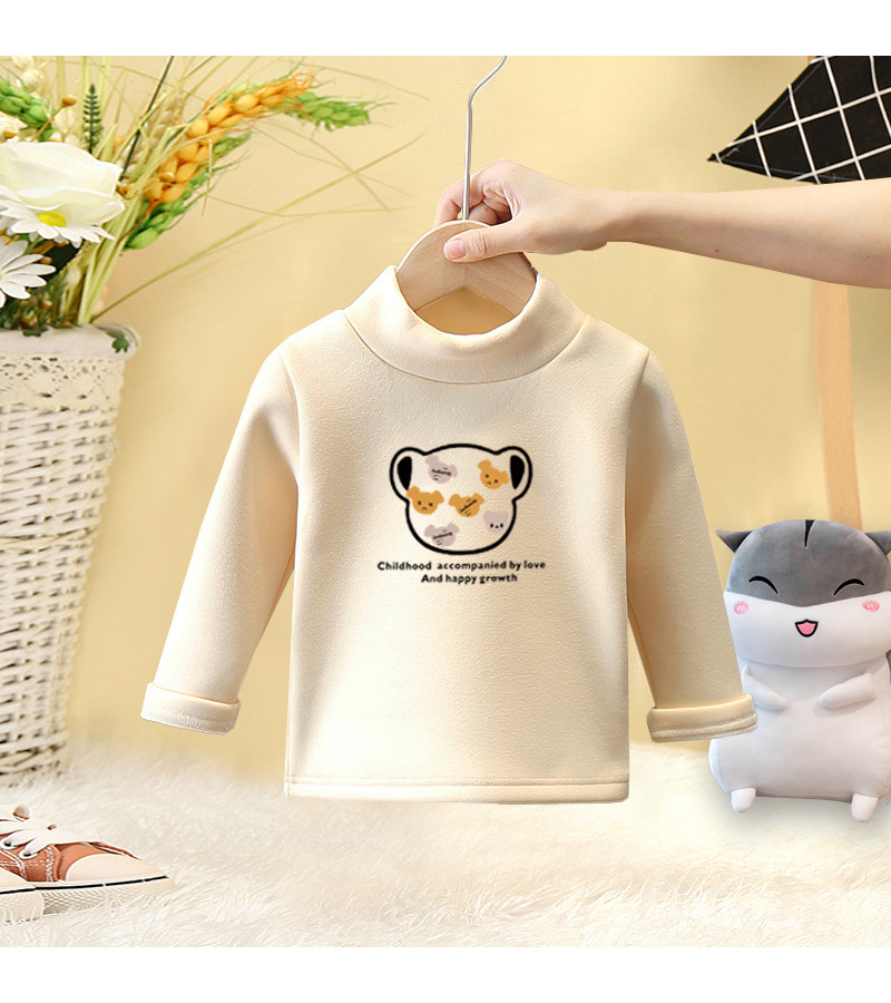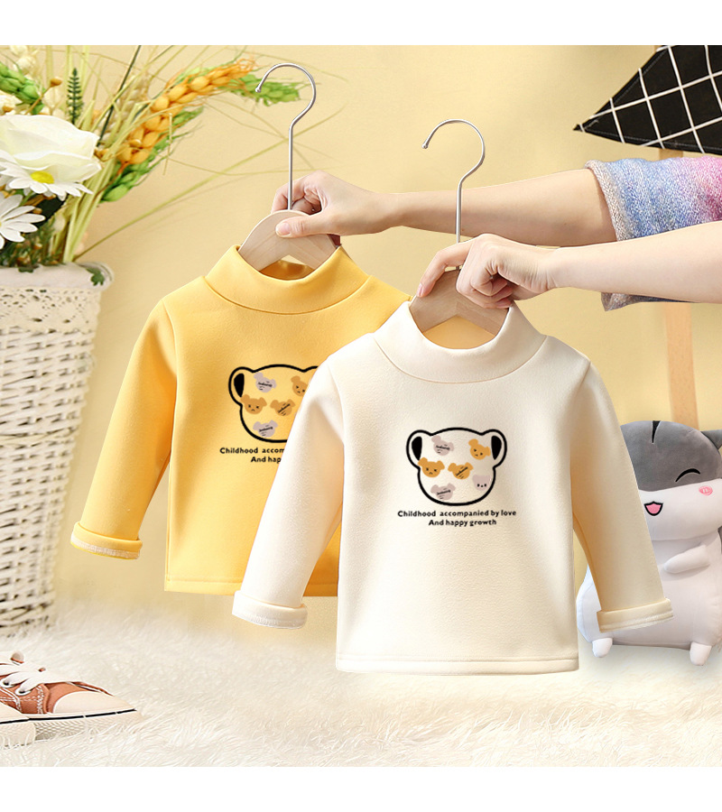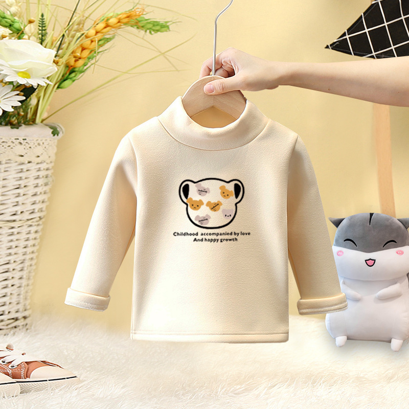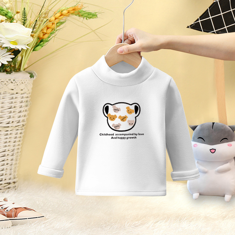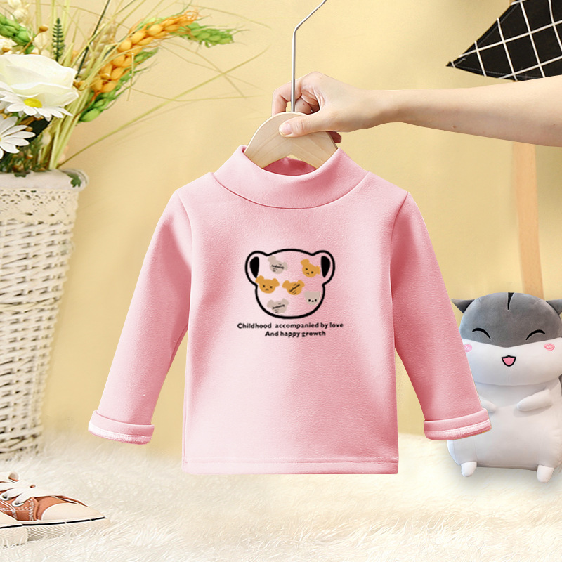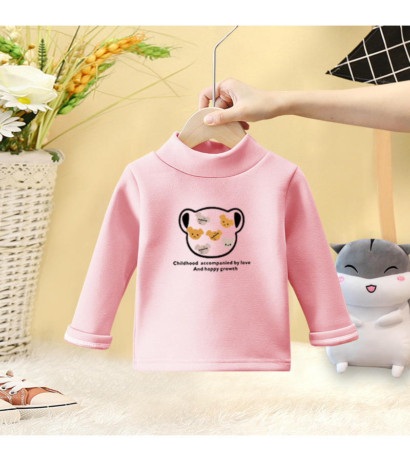 2023 가을과 겨울 새로운 어린이 벨벳베이스 셔츠 서양식 하프 하이 칼라 긴 소매 아기 소녀 만화 내 티셔츠 조수스토어 가기