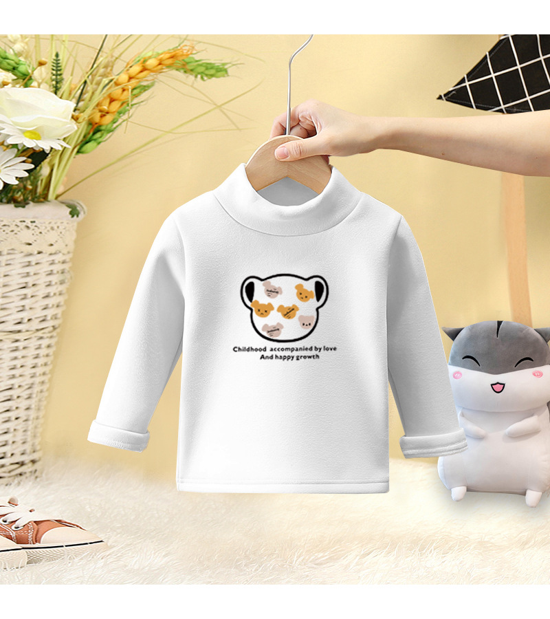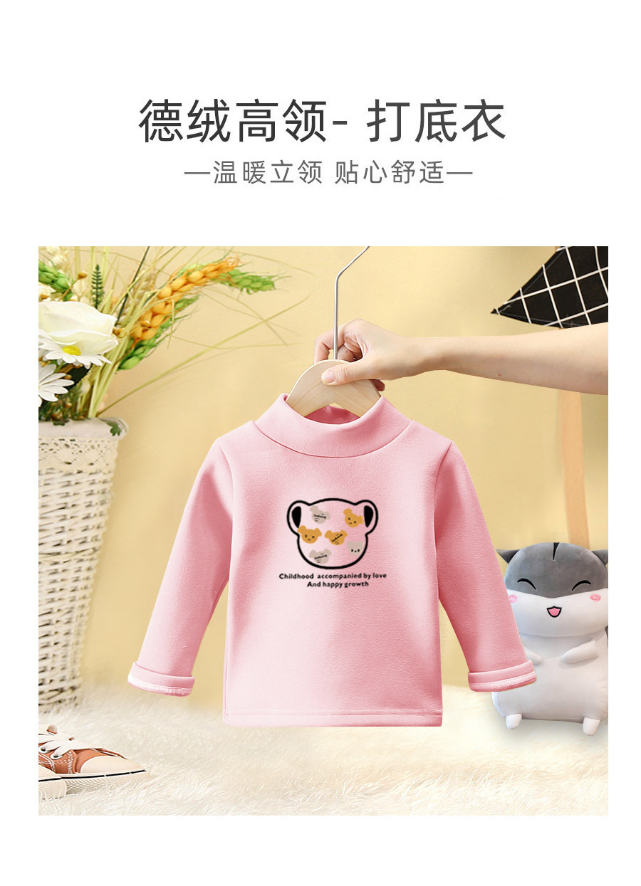 2023 가을과 겨울 새로운 어린이 벨벳베이스 셔츠 서양식 하프 하이 칼라 긴 소매 아기 소녀 만화 내 티셔츠 조수