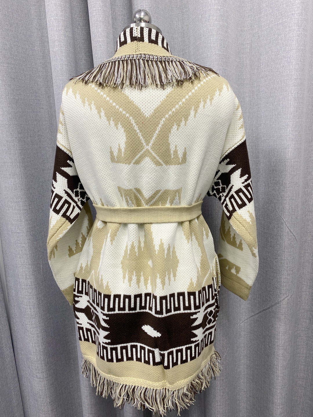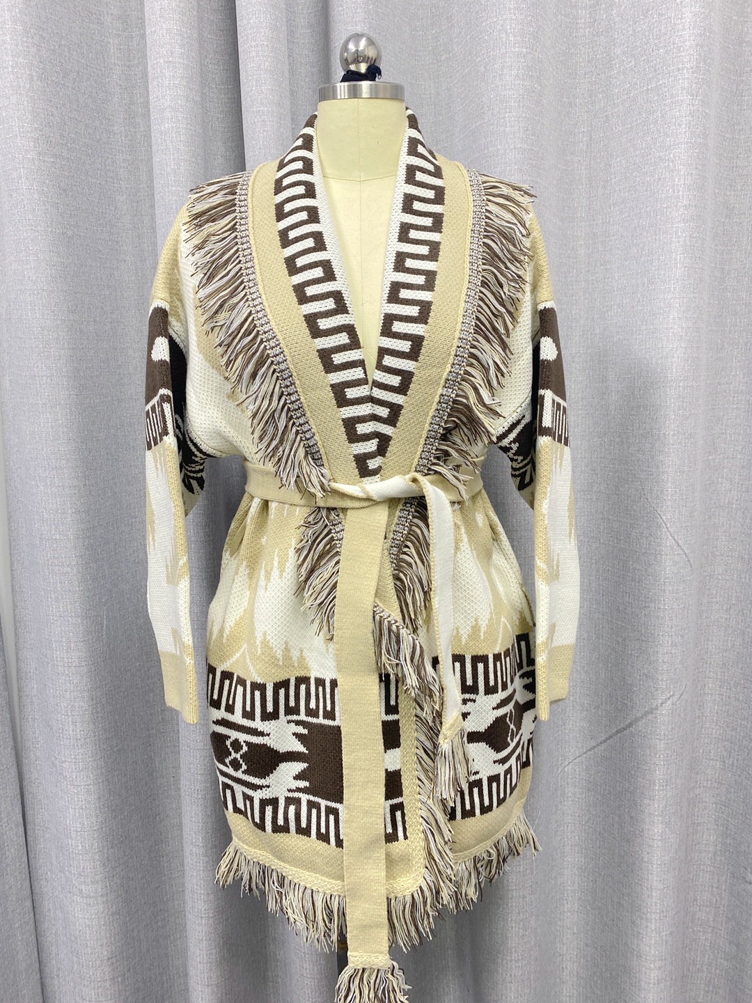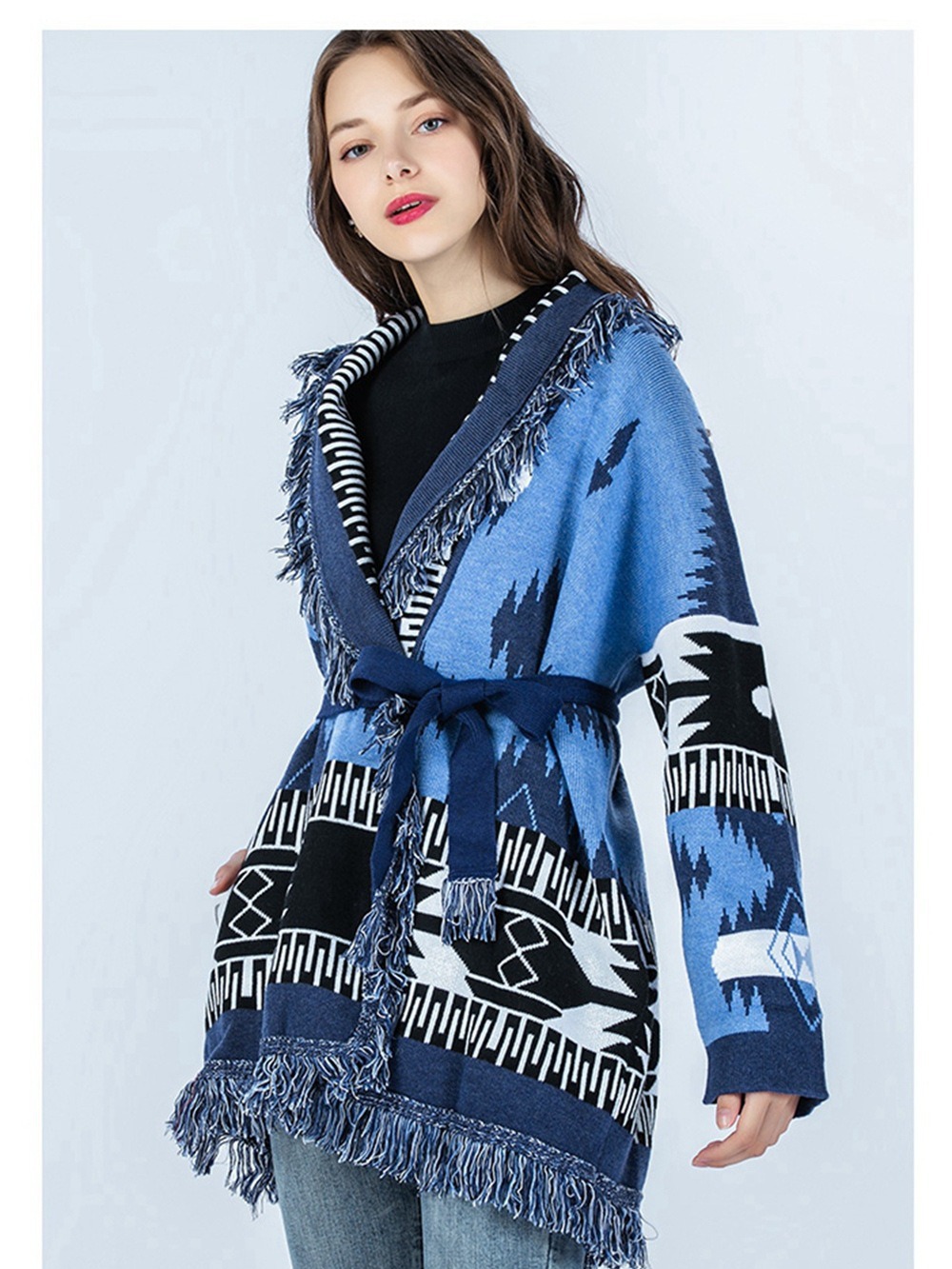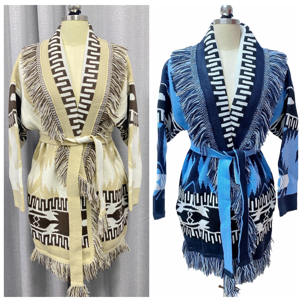대외 무역 크로스 보더 가을과 겨울 보헤미안 술 카디건 틈새 기하학적 그림 대조 색상 자카드 니트 재킷 여성용스토어 가기