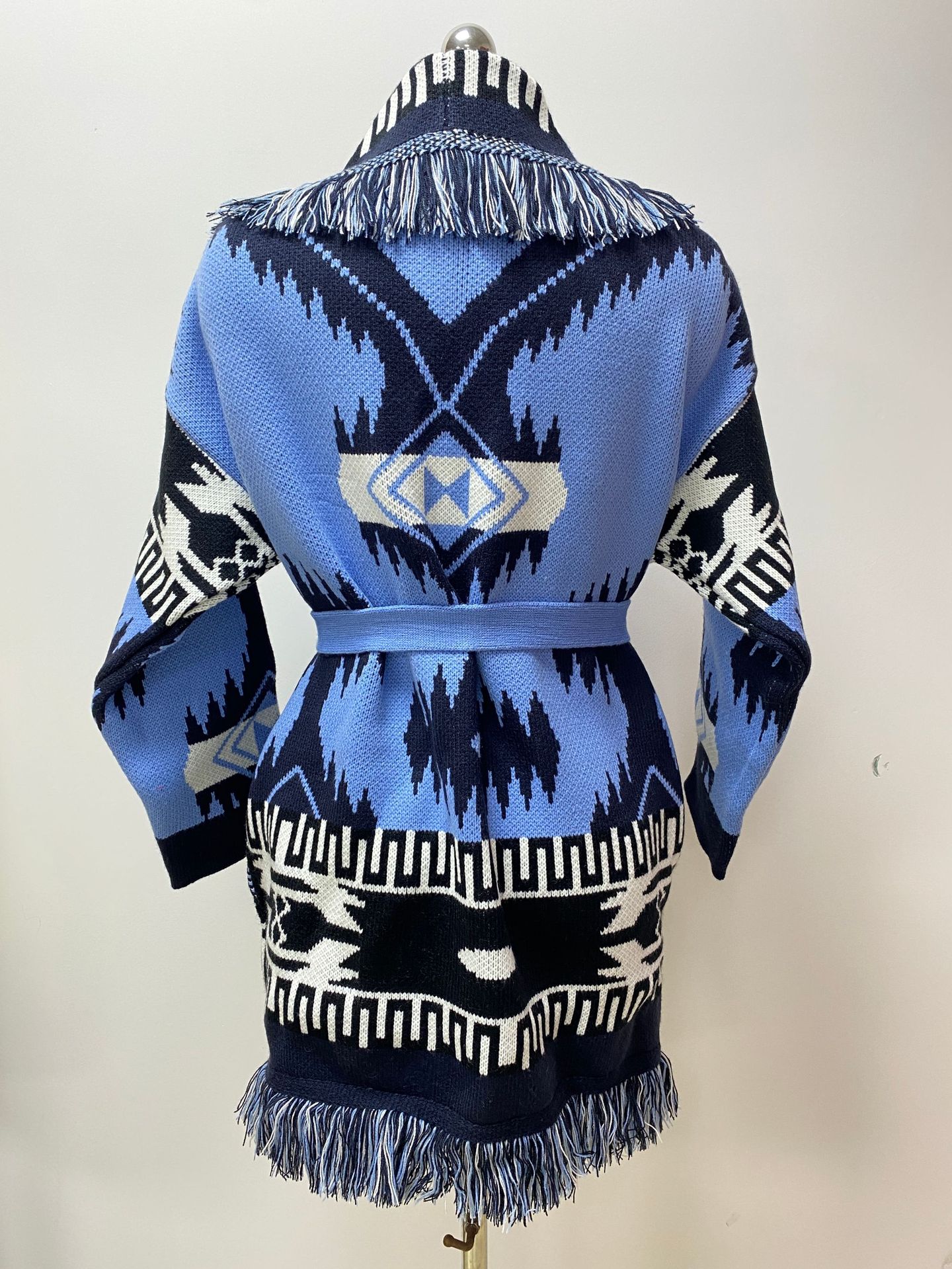대외 무역 크로스 보더 가을과 겨울 보헤미안 술 카디건 틈새 기하학적 그림 대조 색상 자카드 니트 재킷 여성용