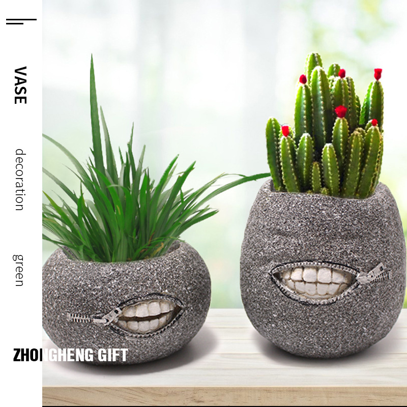국경 간 다육 식물 작은 화분 수지 공예 홈 창조적 인 치아 화분 작은 장식품 데스크탑 장식