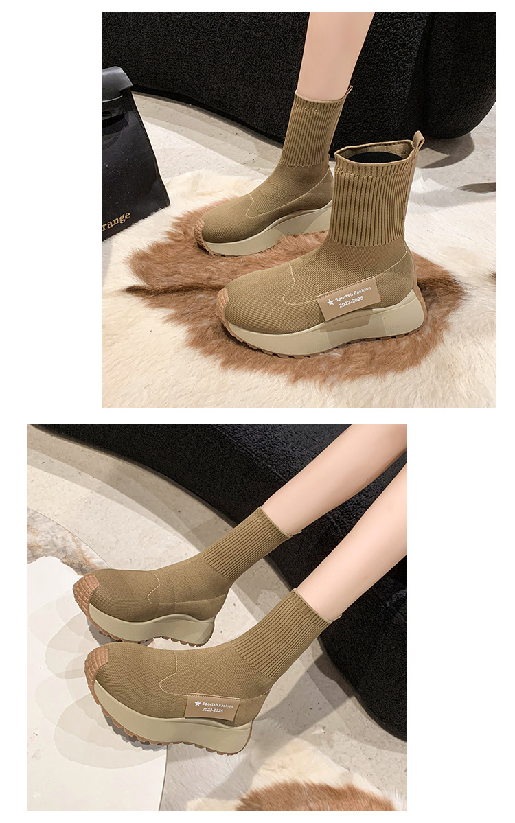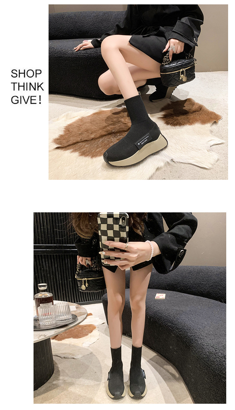 플라이 니트 탄성 부츠 여성용 2024 가을 겨울 신상 두꺼운 밑창 중간 길이 부츠 유럽 및 미국 스타일 슬림 패션 다용도 양말 부츠스토어 가기