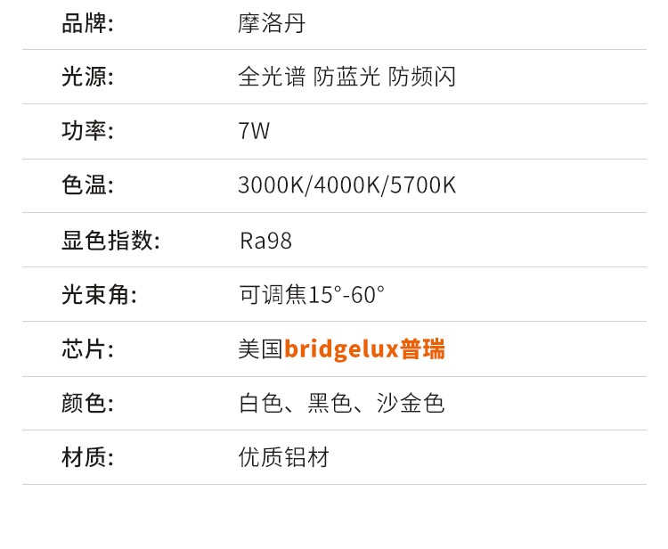 • 흰색 조정 가능한 초점 직경 6 * 높이 15cm