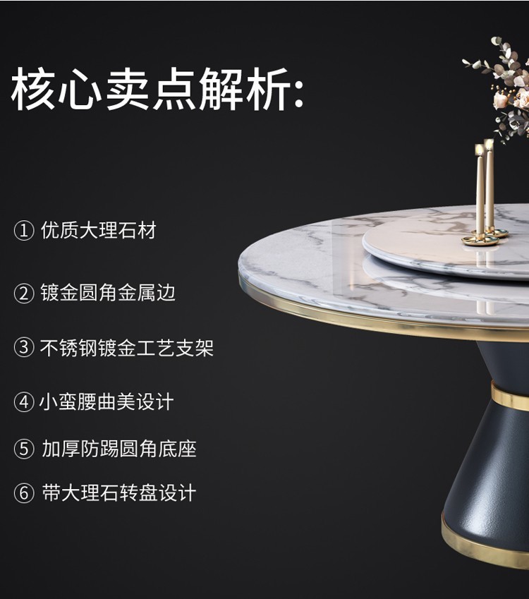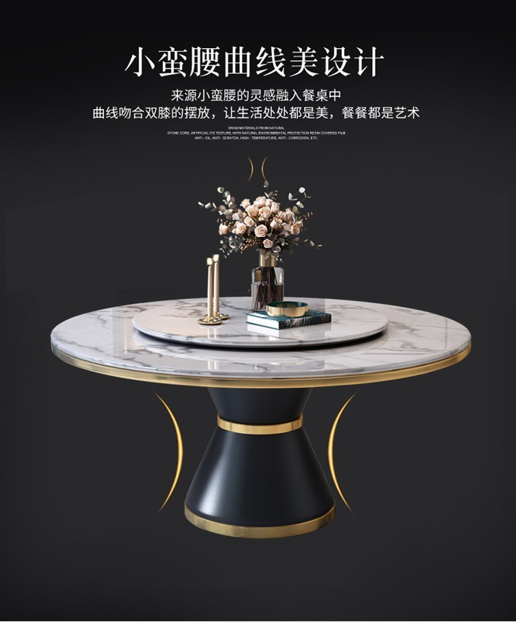 • 골드 링 부착 가벼운 고급 식탁 [전동 턴테이블]