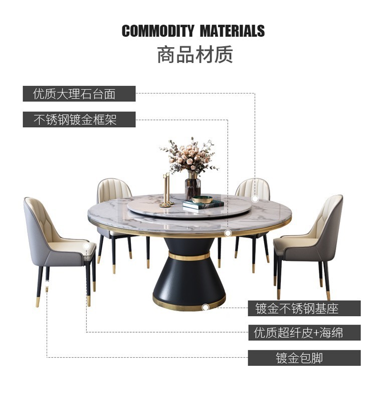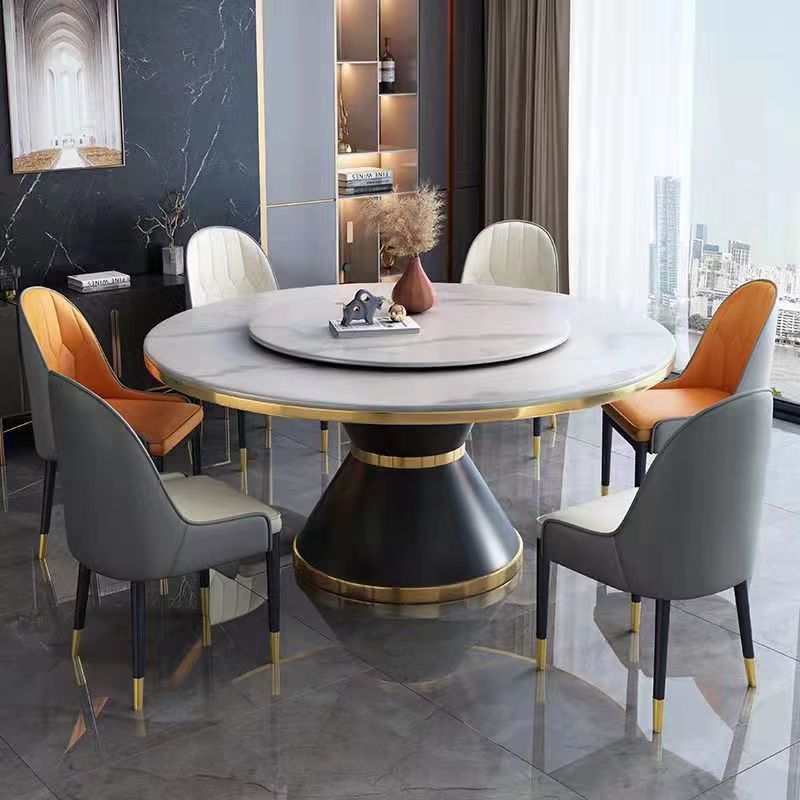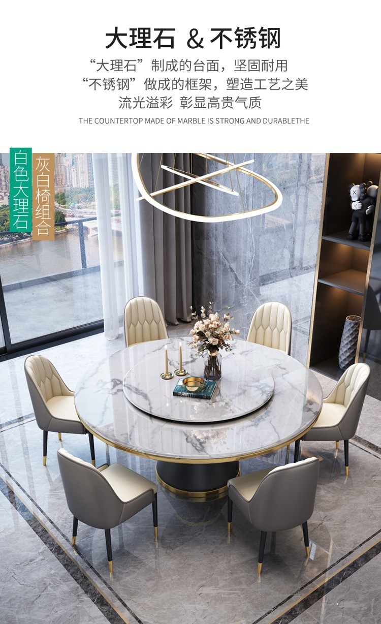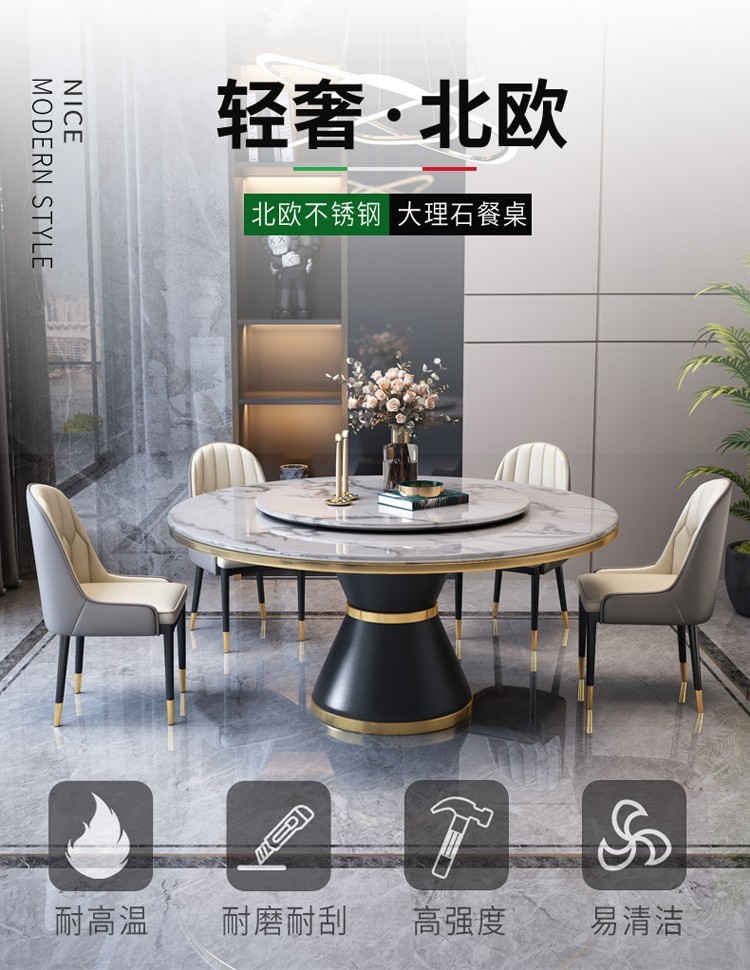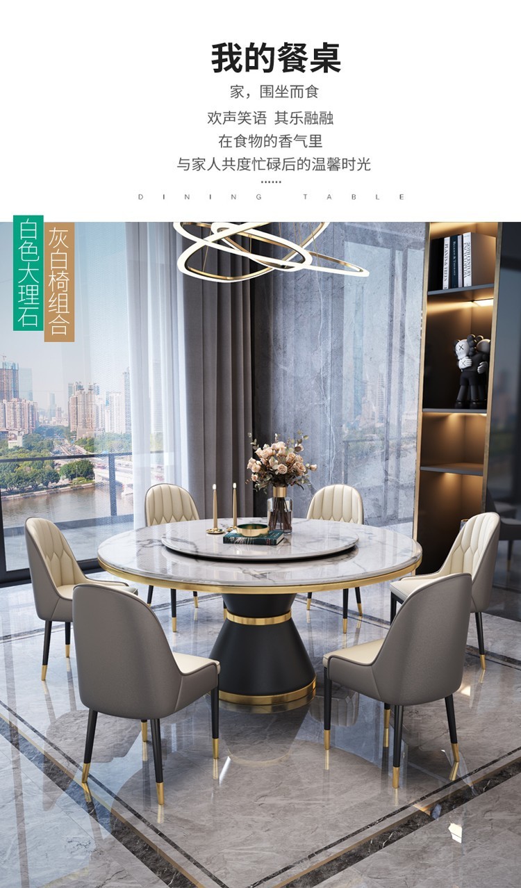 가벼운 고급 대리석 식탁과 의자 조합 원형 테이블 소형 아파트를위한 이중 사용과 현대 간단한 가정용 원형 테이블