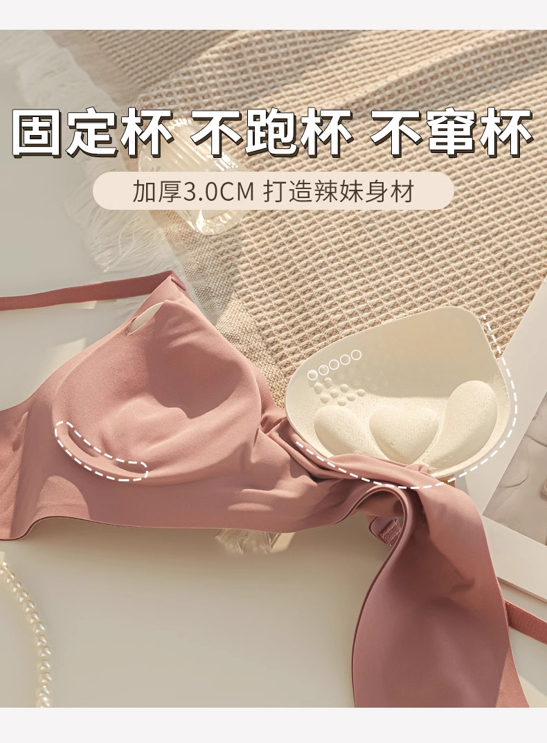 작은 가슴을 더 크게 보이게 하는 만화풍 브라, 여성용 무봉제 두꺼운 푸쉬업 브라, 컵이 빠지지 않는 노와이어 젤 브라