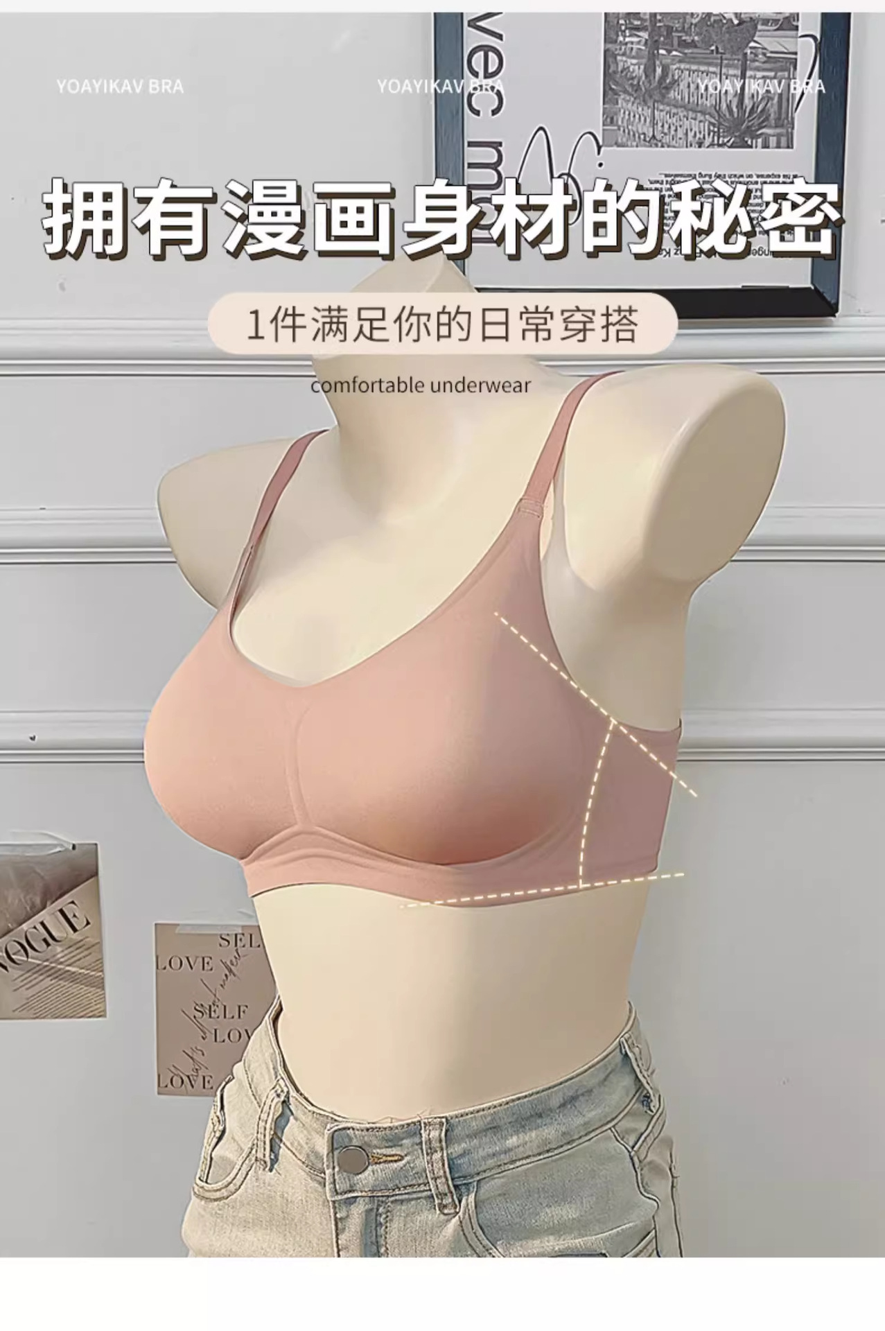 작은 가슴을 더 크게 보이게 하는 만화풍 브라, 여성용 무봉제 두꺼운 푸쉬업 브라, 컵이 빠지지 않는 노와이어 젤 브라스토어 가기