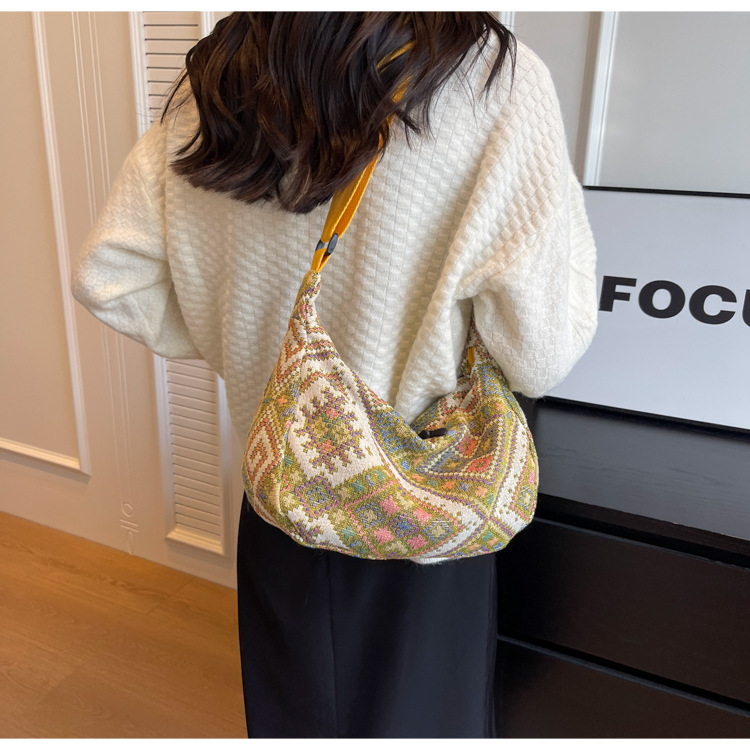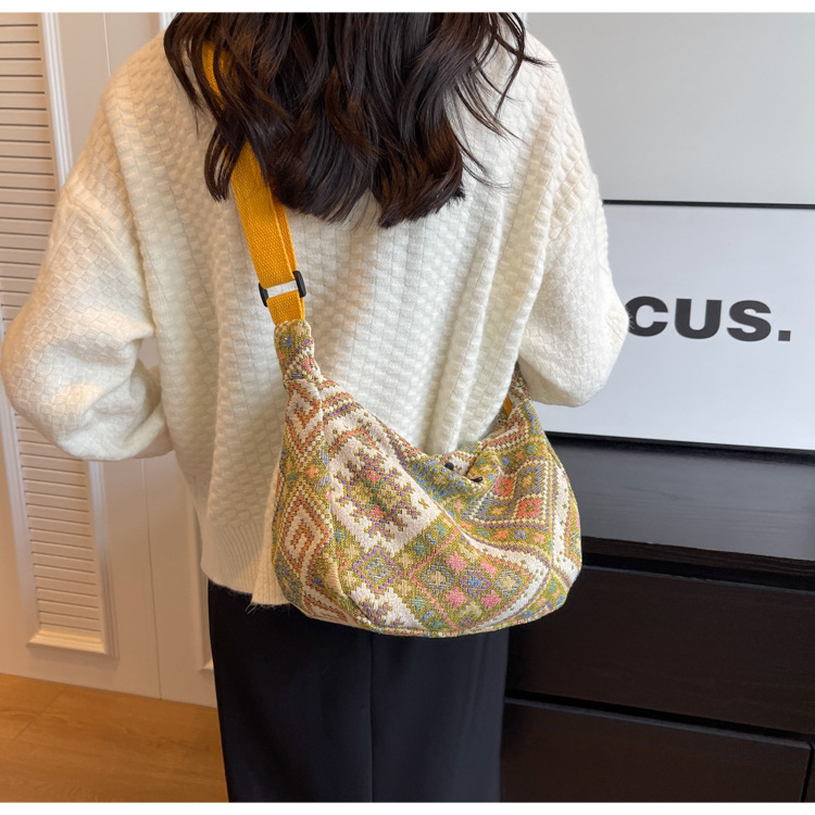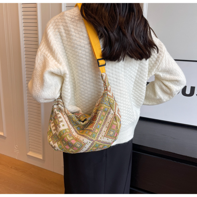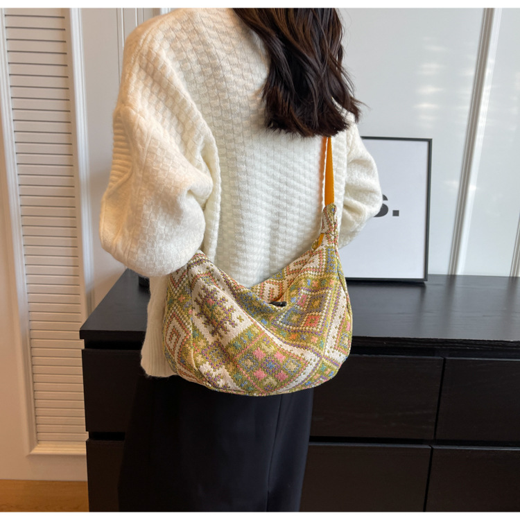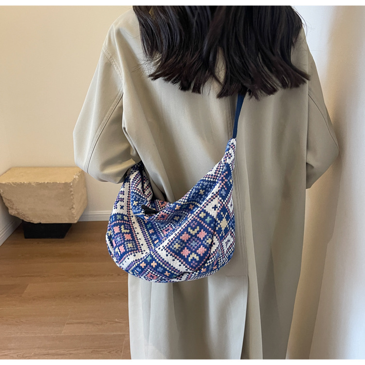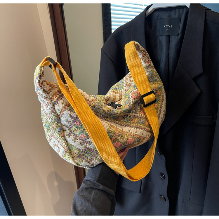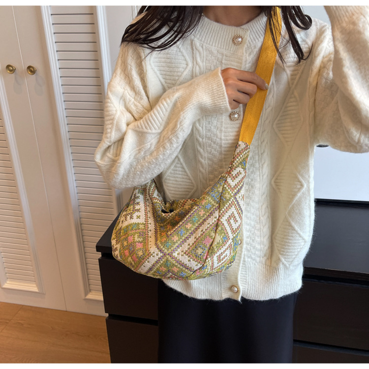 여성용 대용량 민족 스타일 만두 가방 2025 새로운 한국어 버전 여성용 다용도 크로스 바디 백 인기 숄더백
