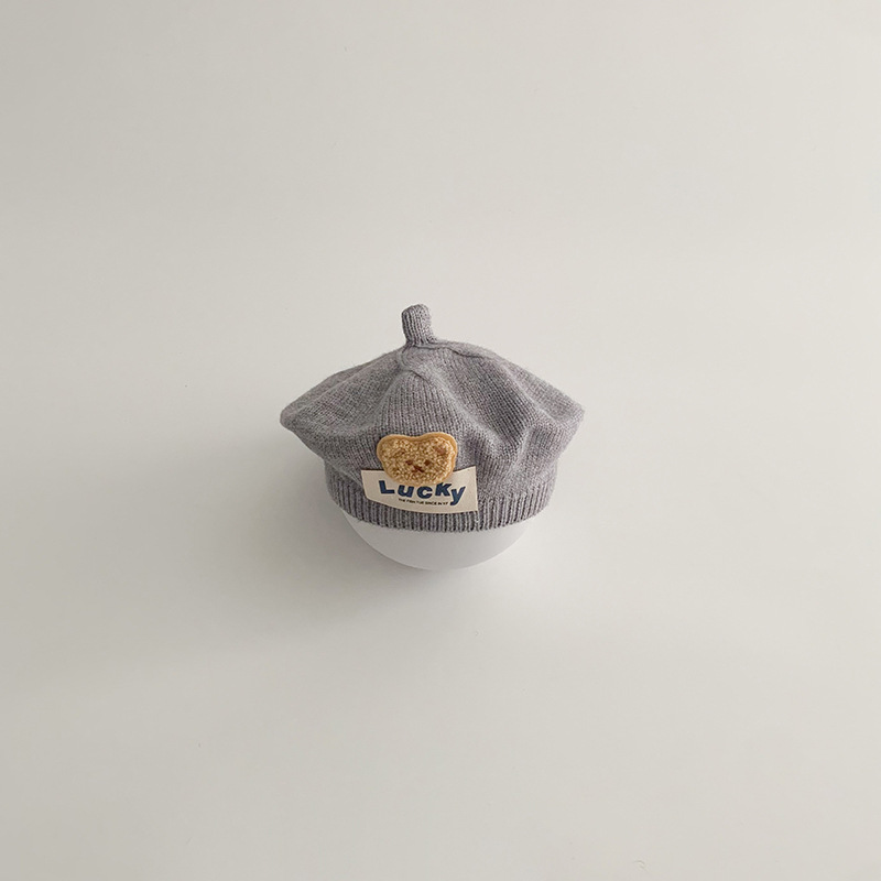Qiu Nan 한국식 어린이 베레모 가을과 겨울 매력적인 곰 니트 울 모자 아기 모자 화가 모자