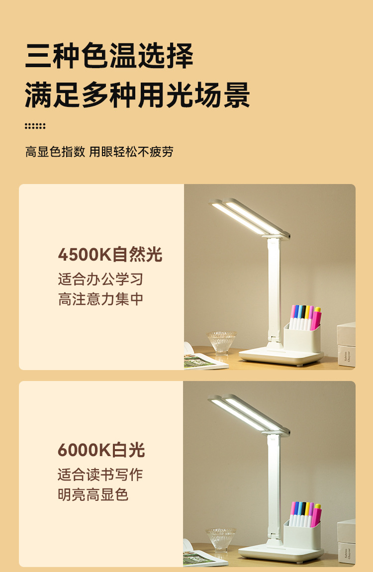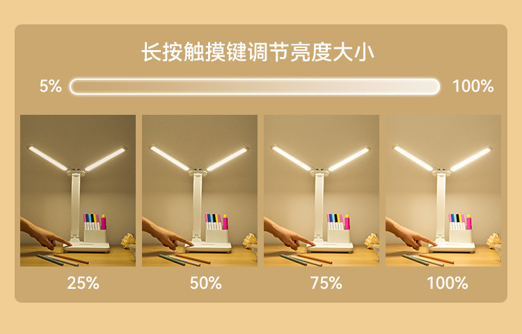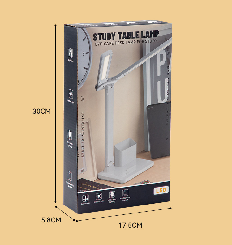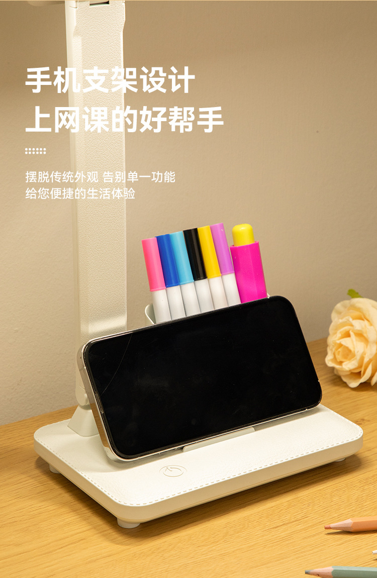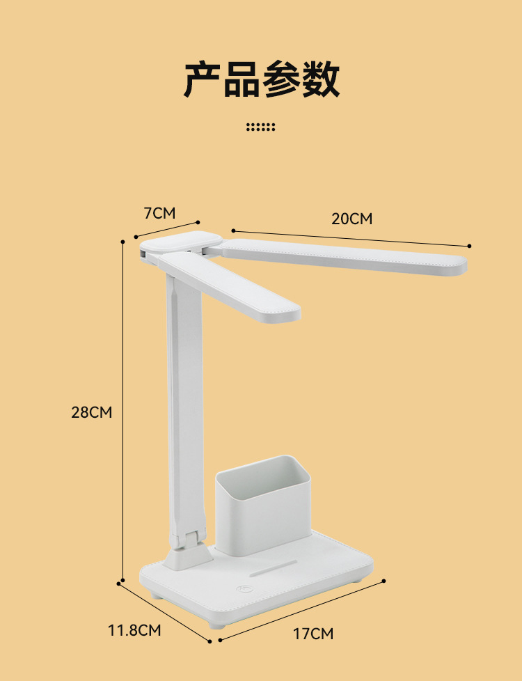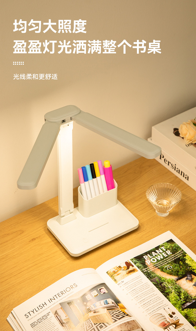 새로운 LED 더블 헤드 USB 충전식 접이식 책상 램프 휴대 전화 홀더 펜 홀더 탁상용 독서 램프 책상 램프 공장